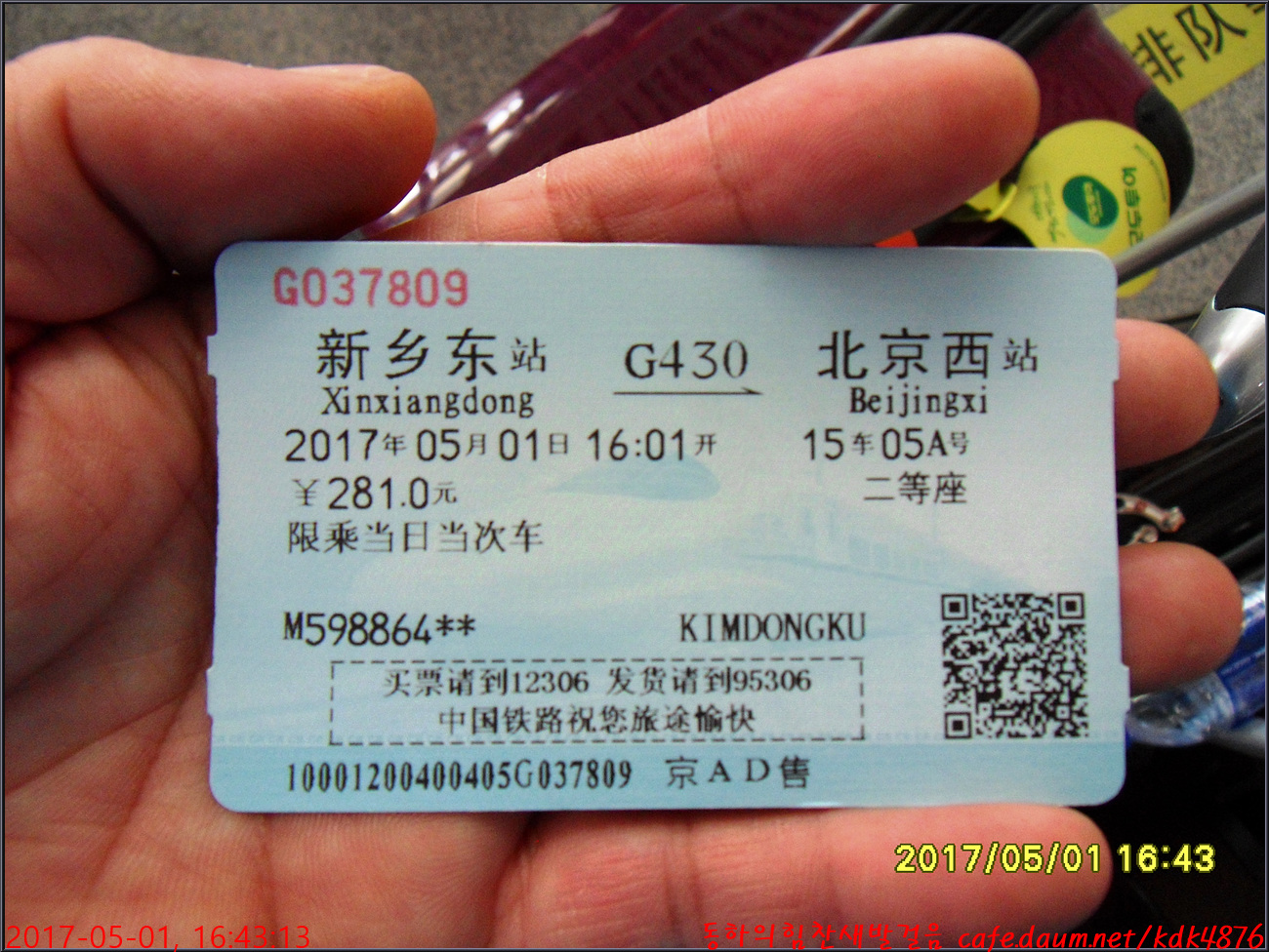 북경 서 G430 16시 01분 출발하는 열차를 타게 되지요.