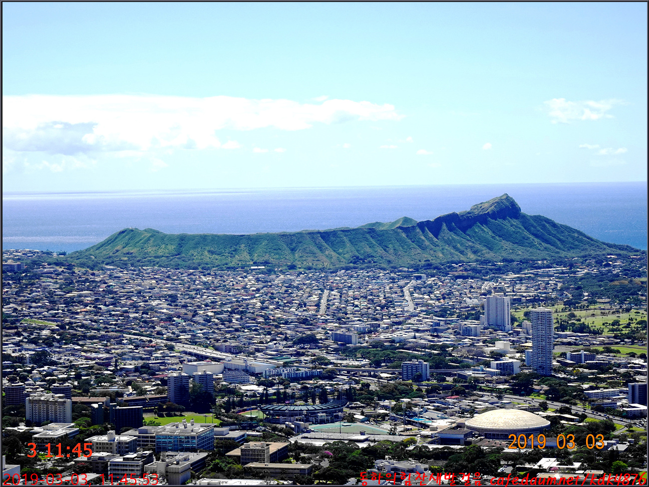호놀룰루시가지를 배경으로 동하