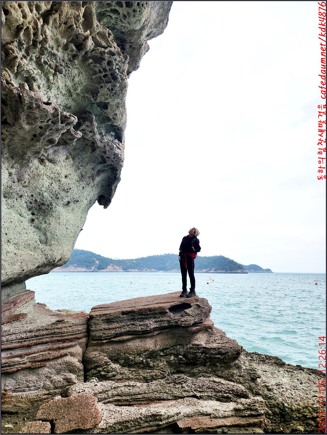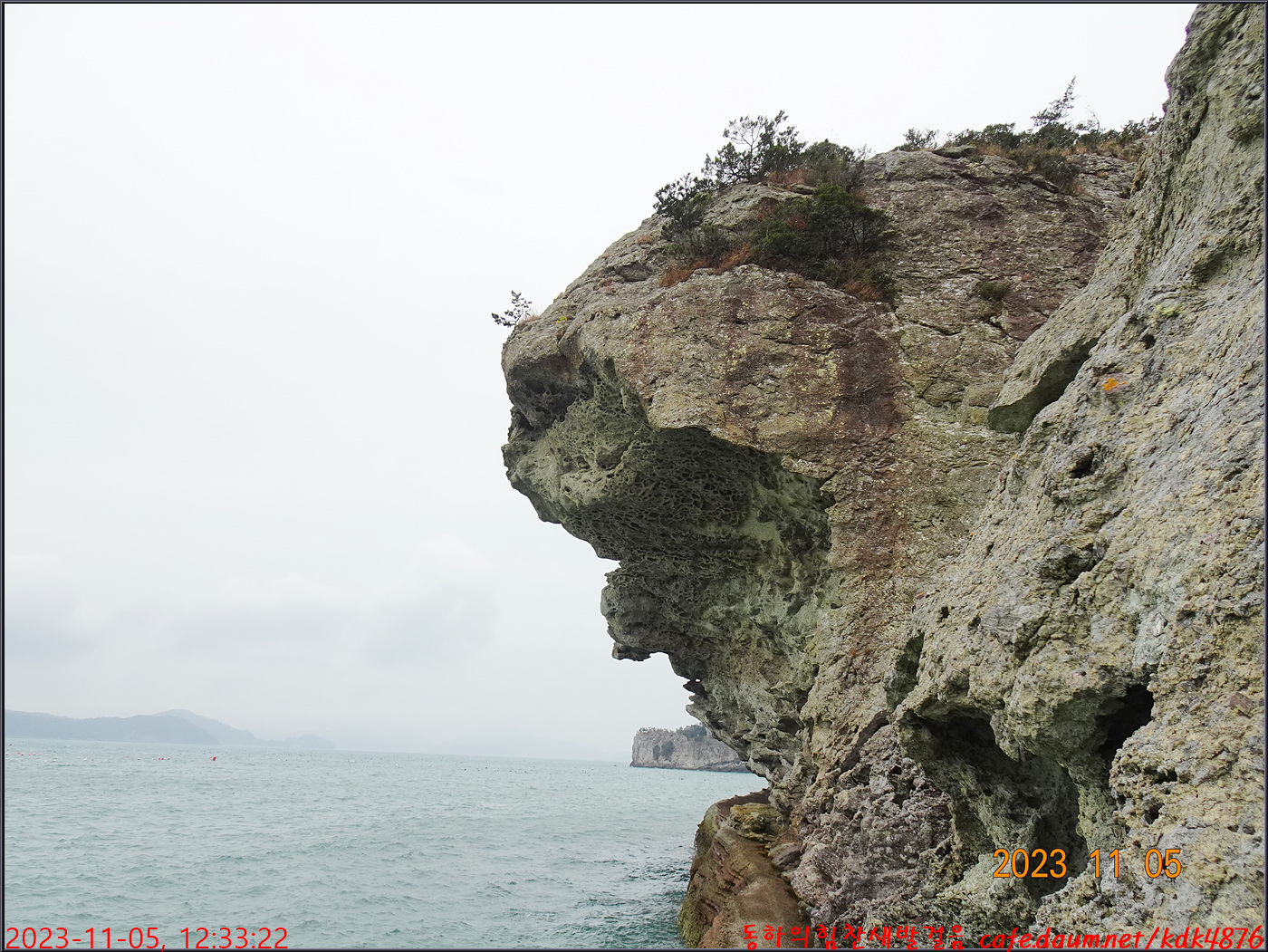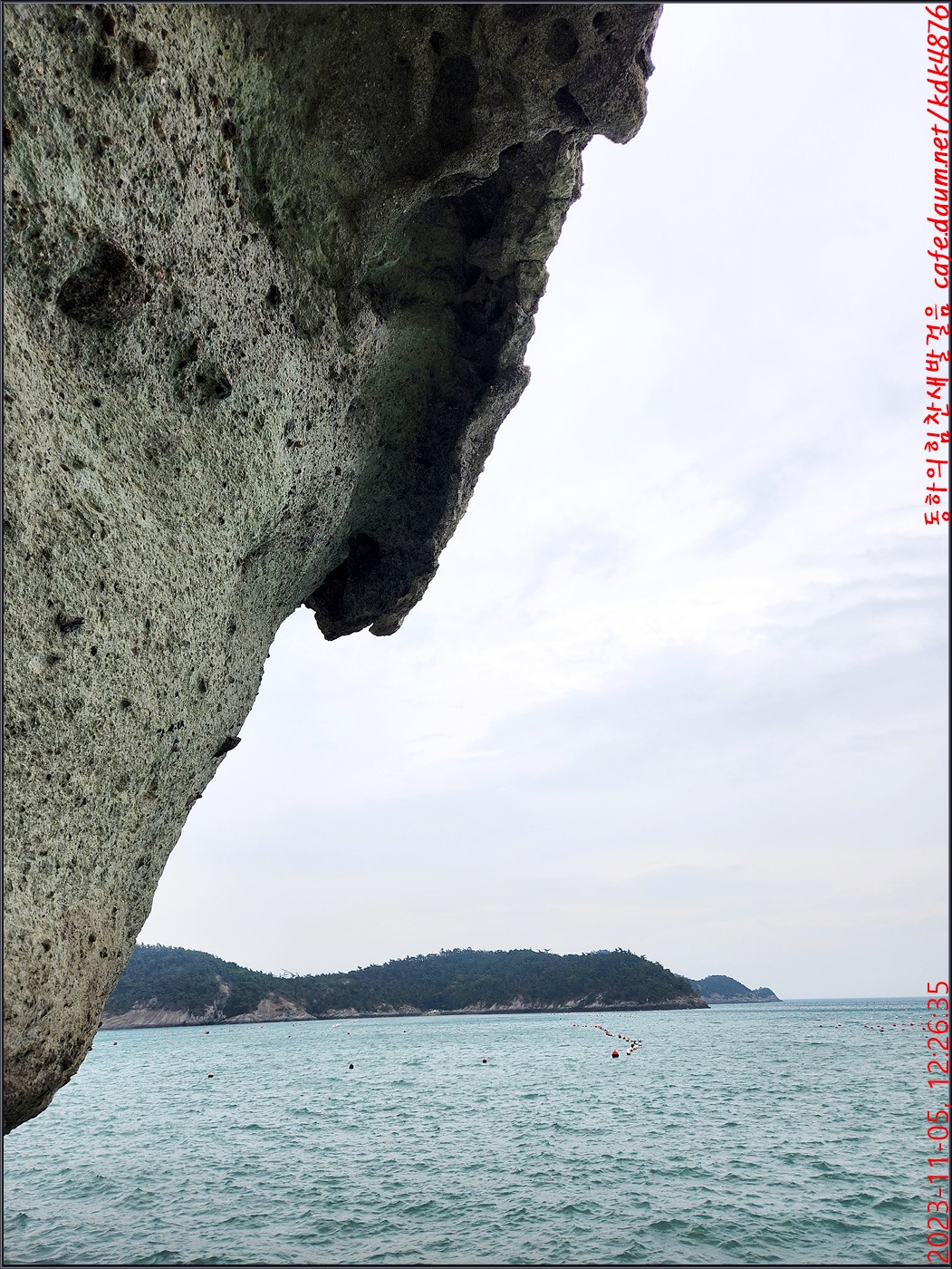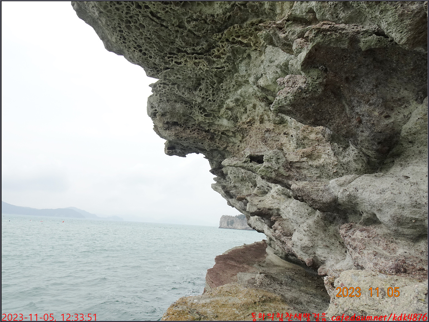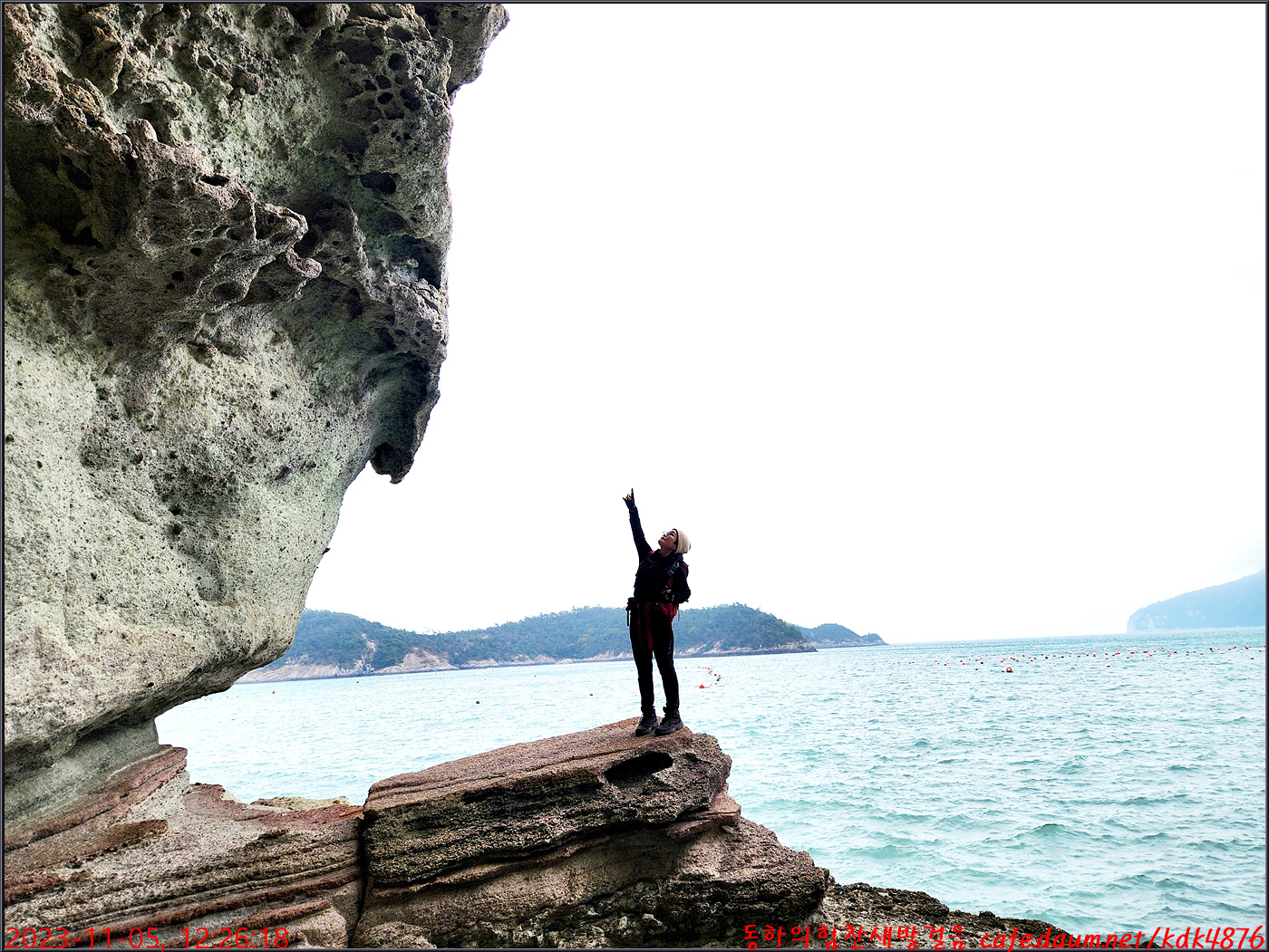 동하도 가마바위를 배경으로 흔적을 남기고
