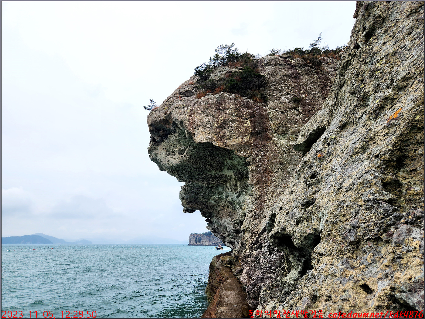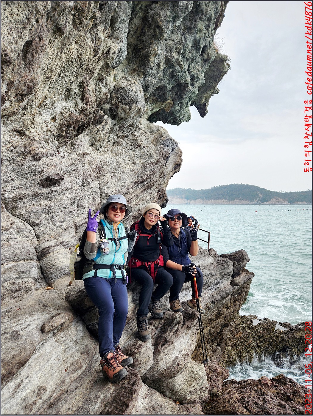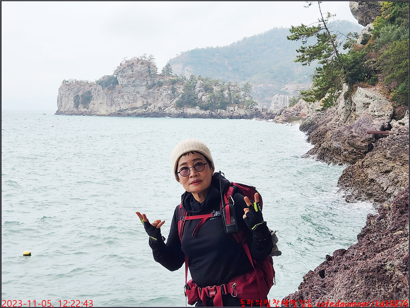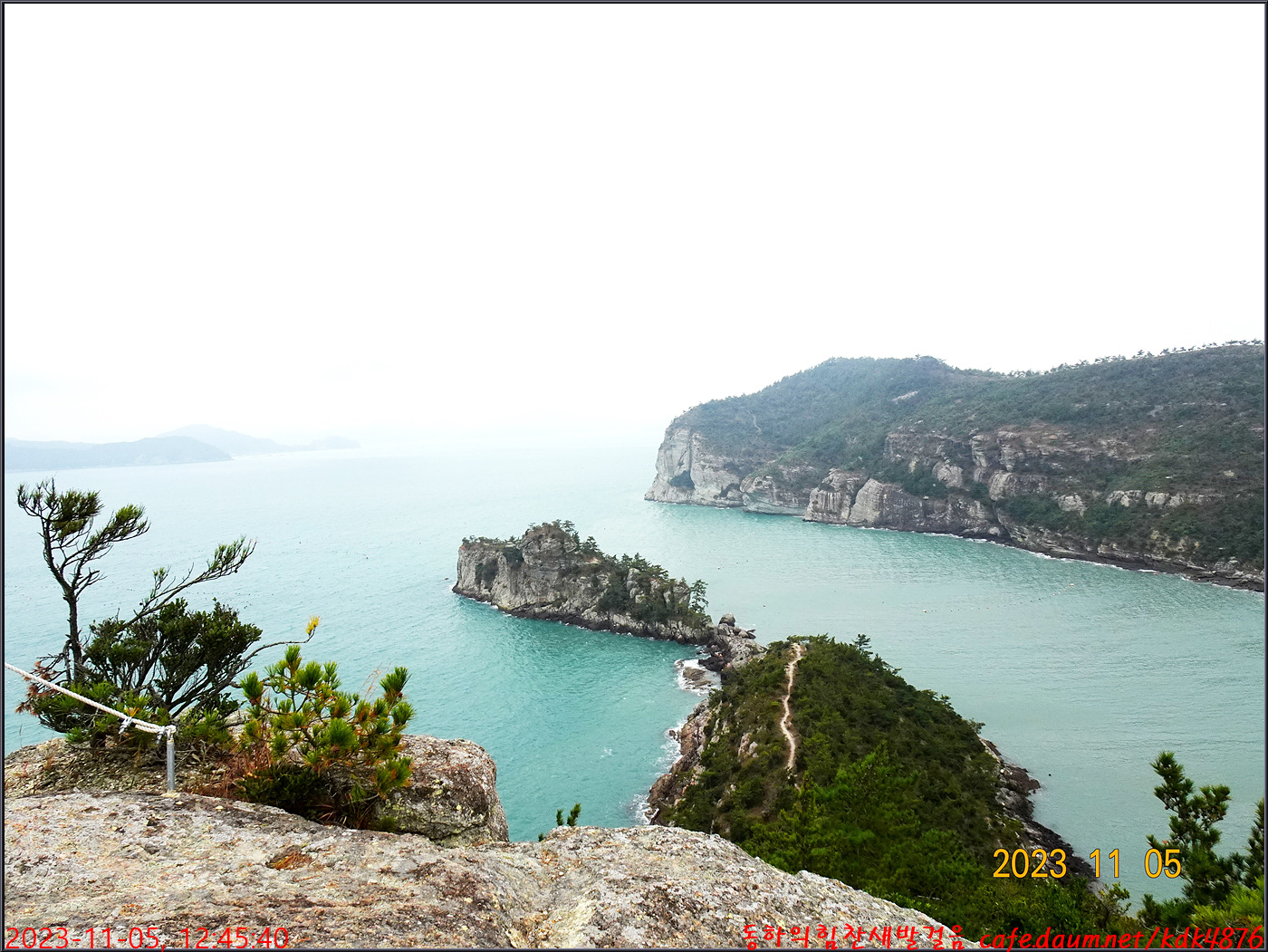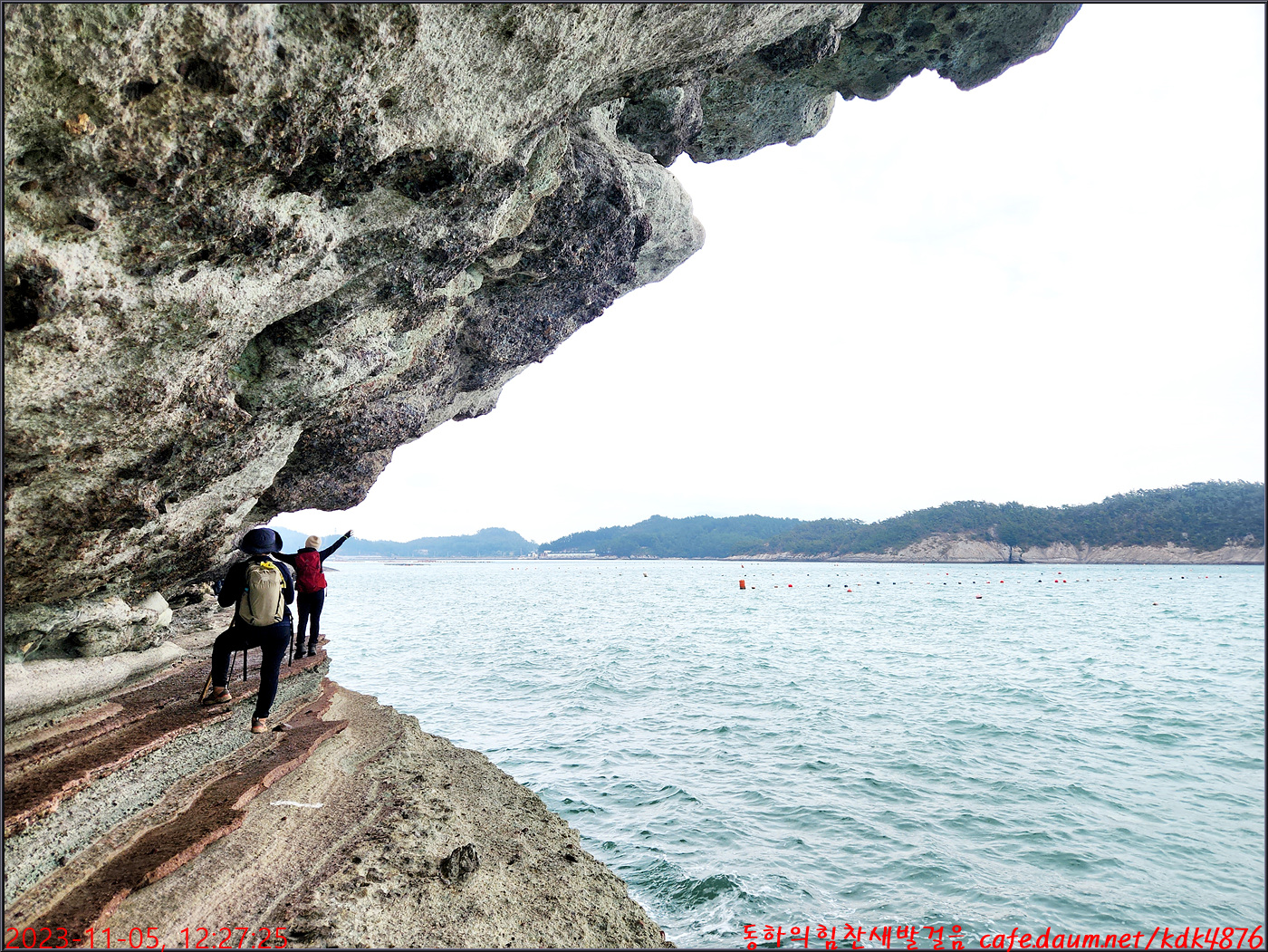 동하도 가마바위를 배경으로 흔적을 남기고