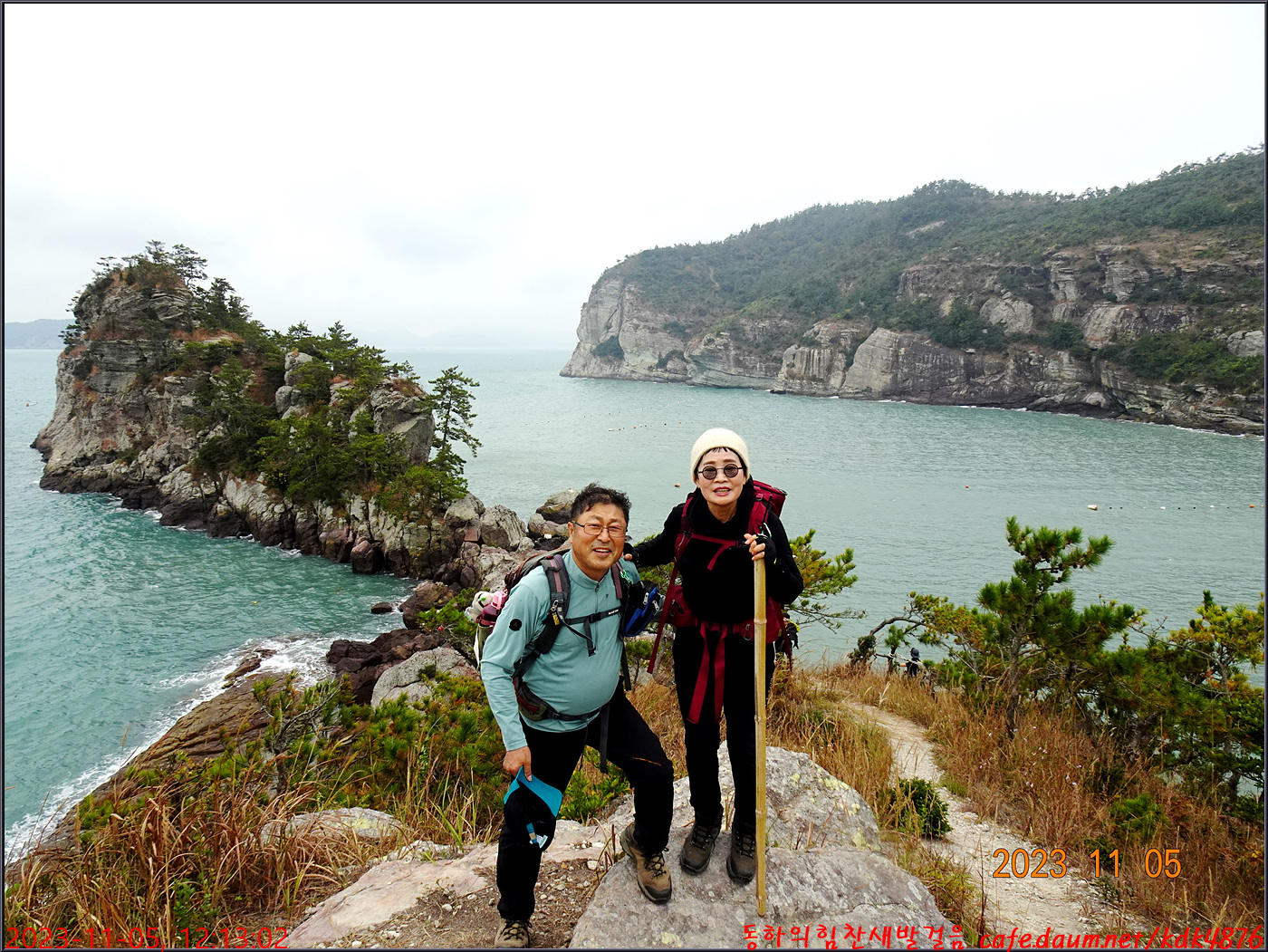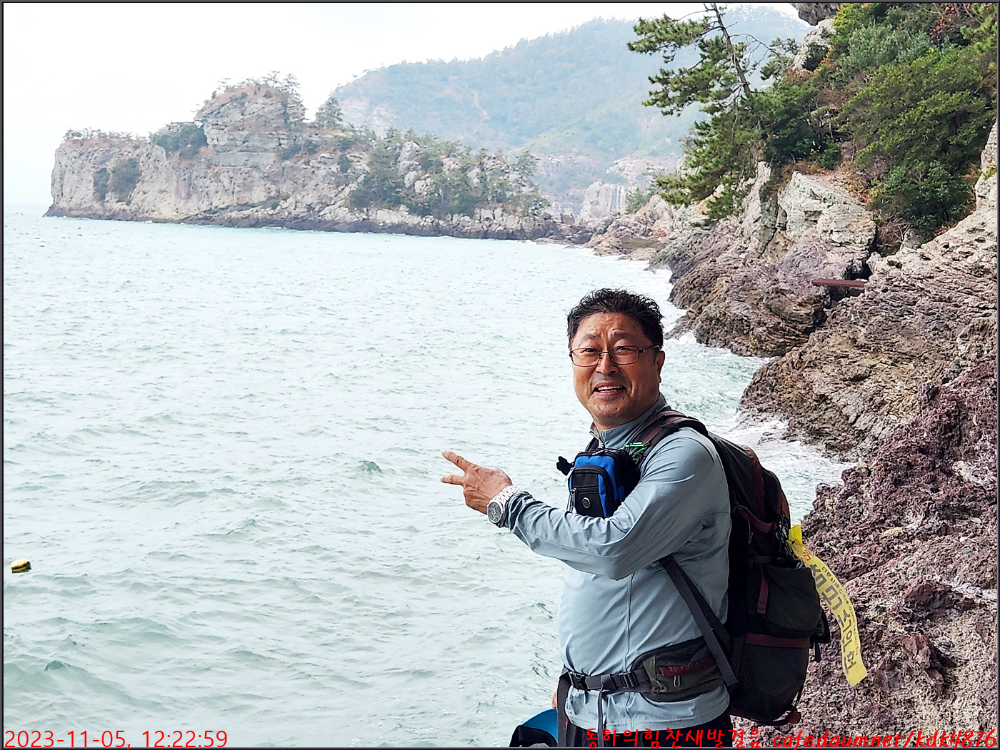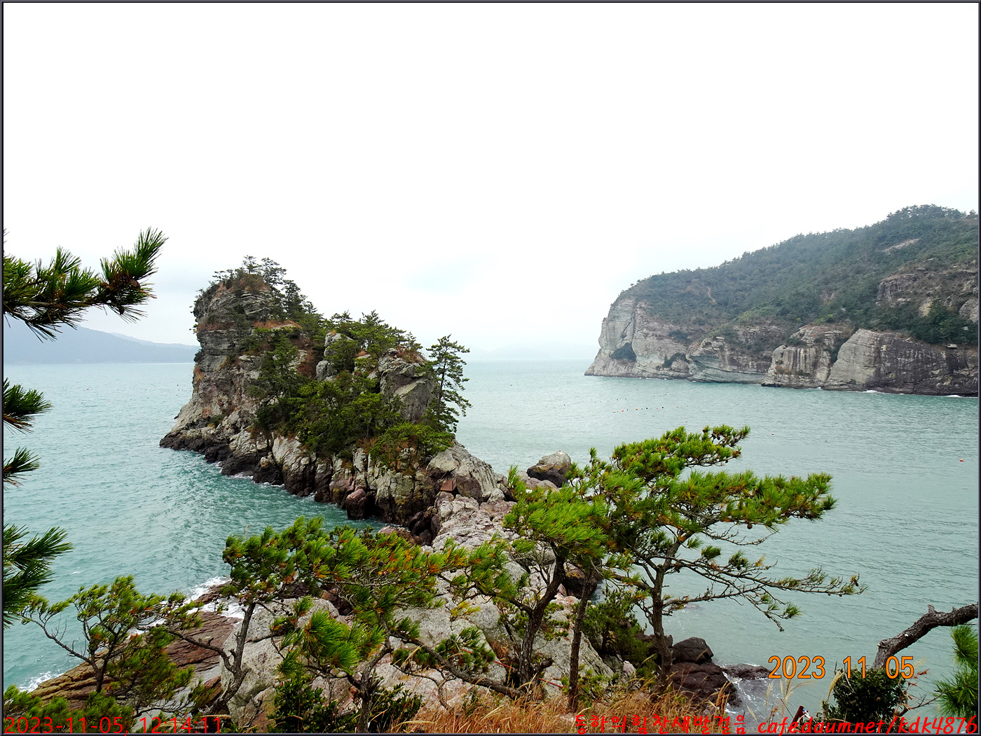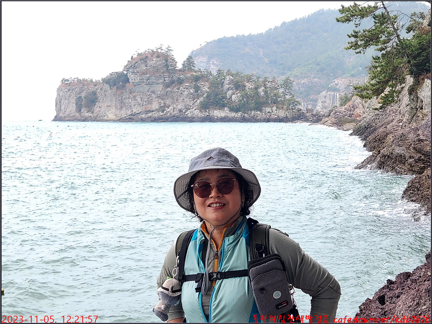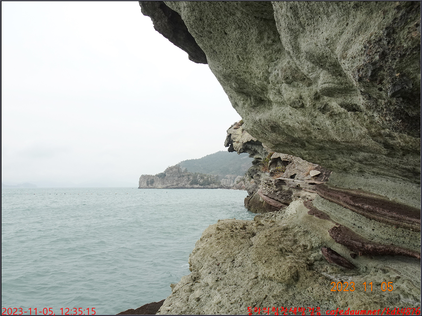 동하도 가마바위를 배경으로 흔적을 남기고