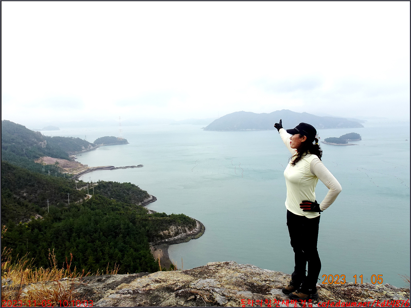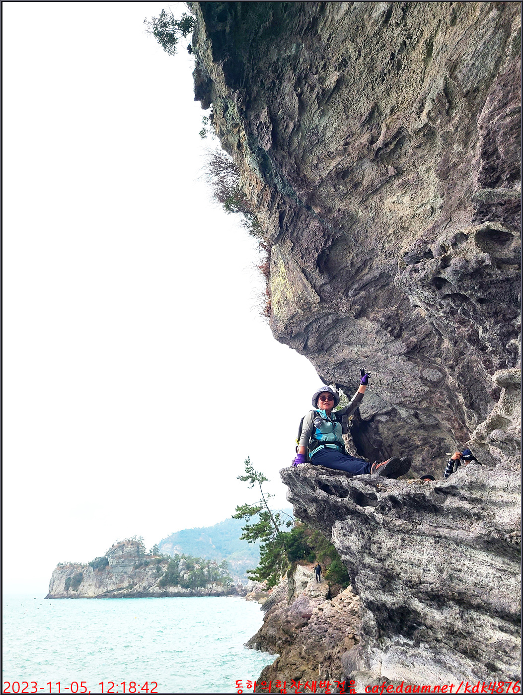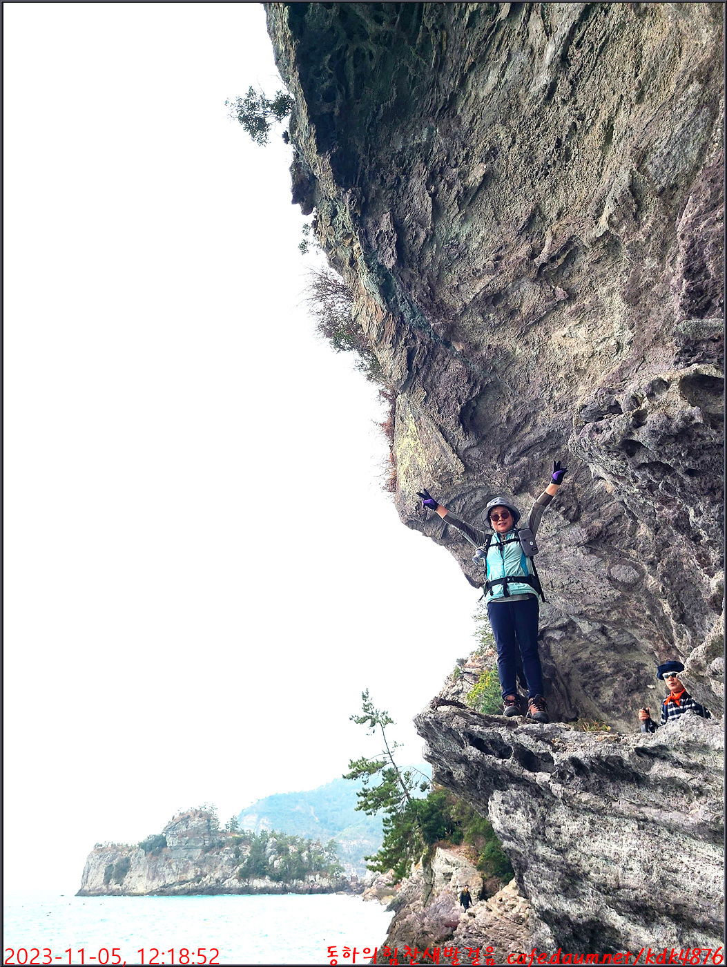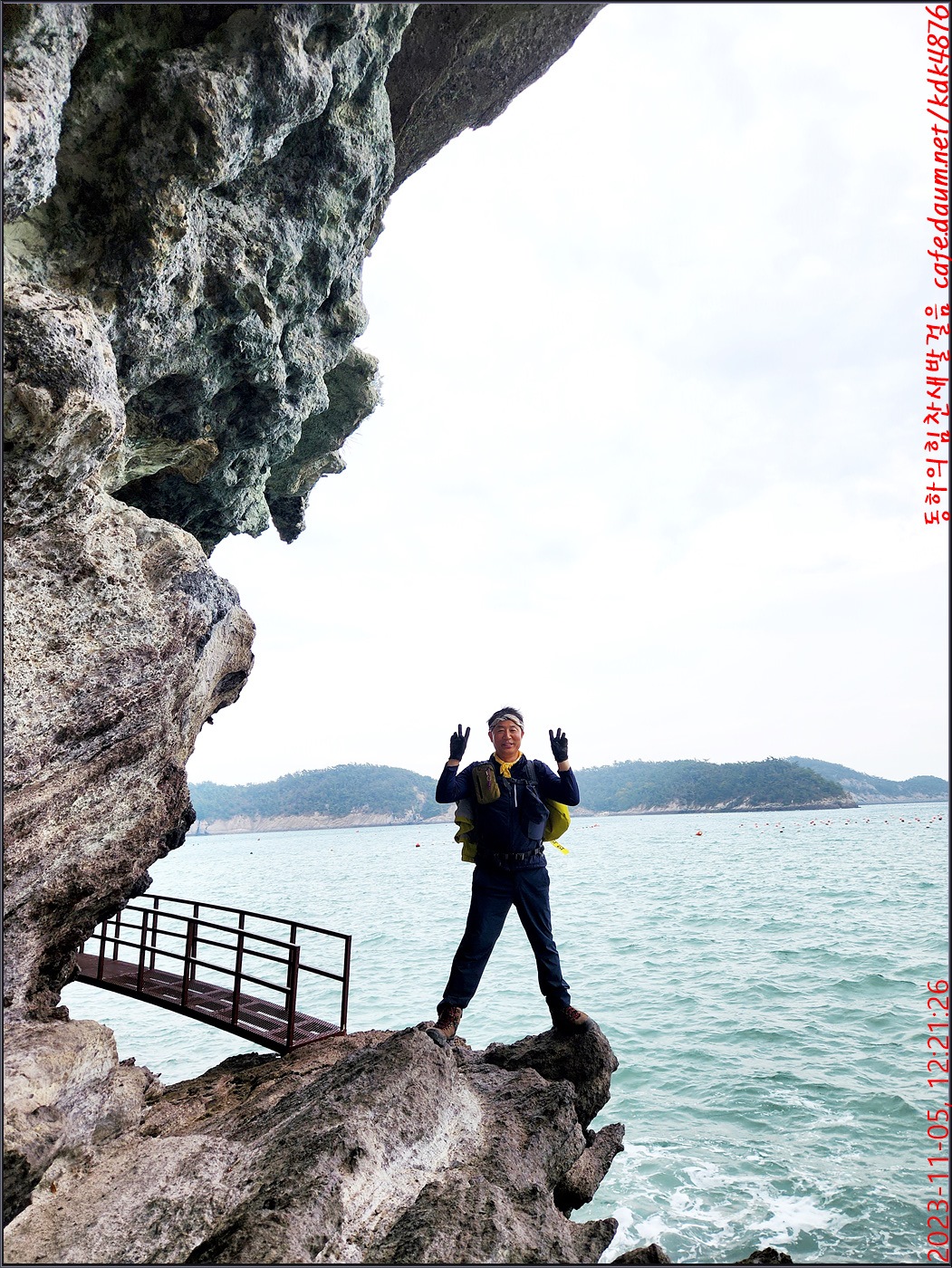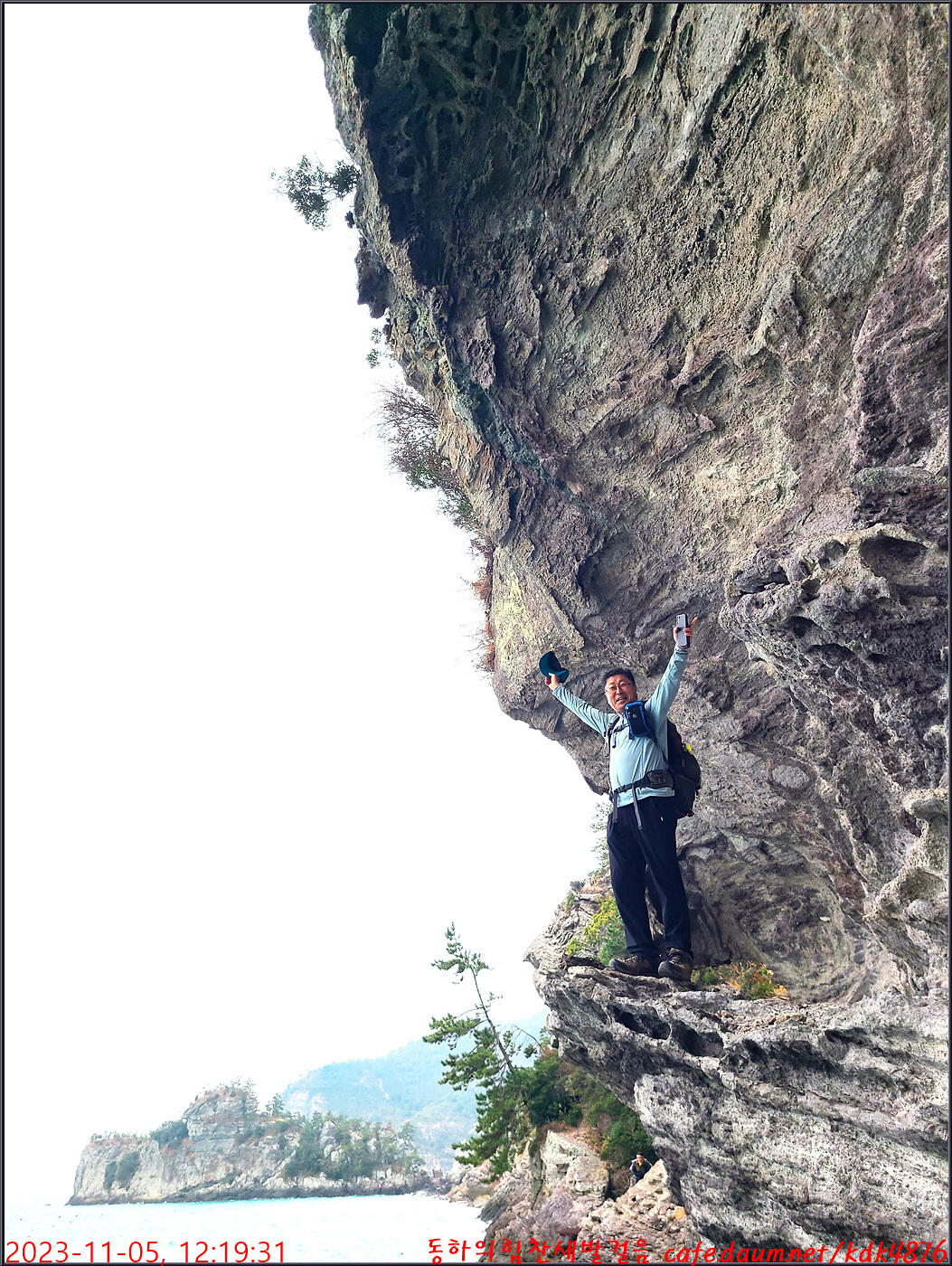 절벽 위에서 대화도를 배경으로 만세~~~ㅎㅎ, 봉남님
