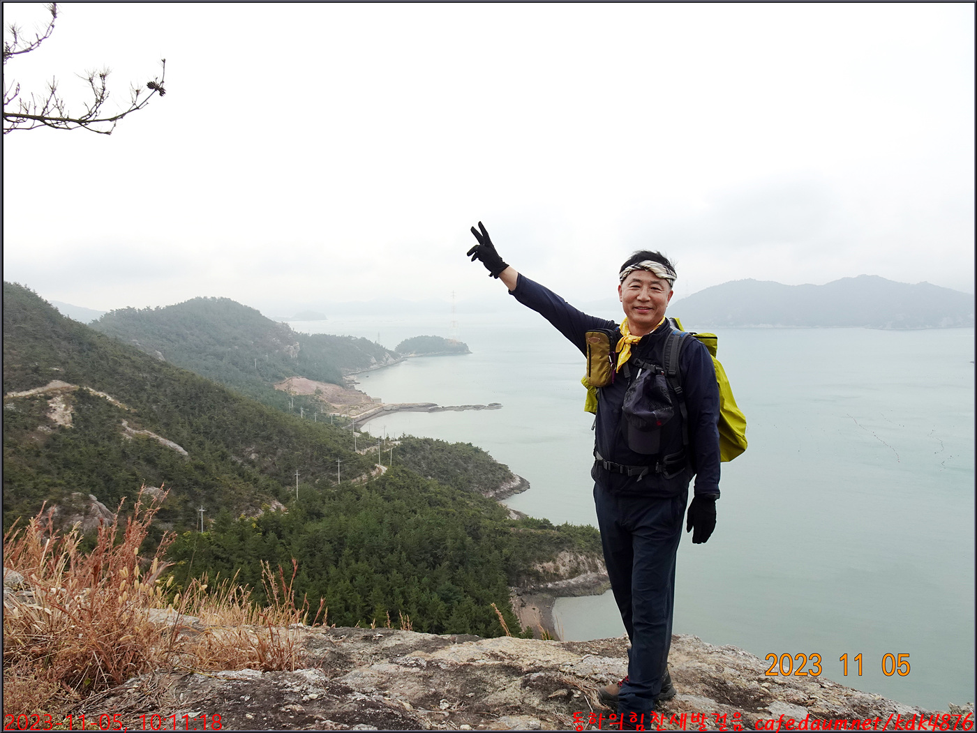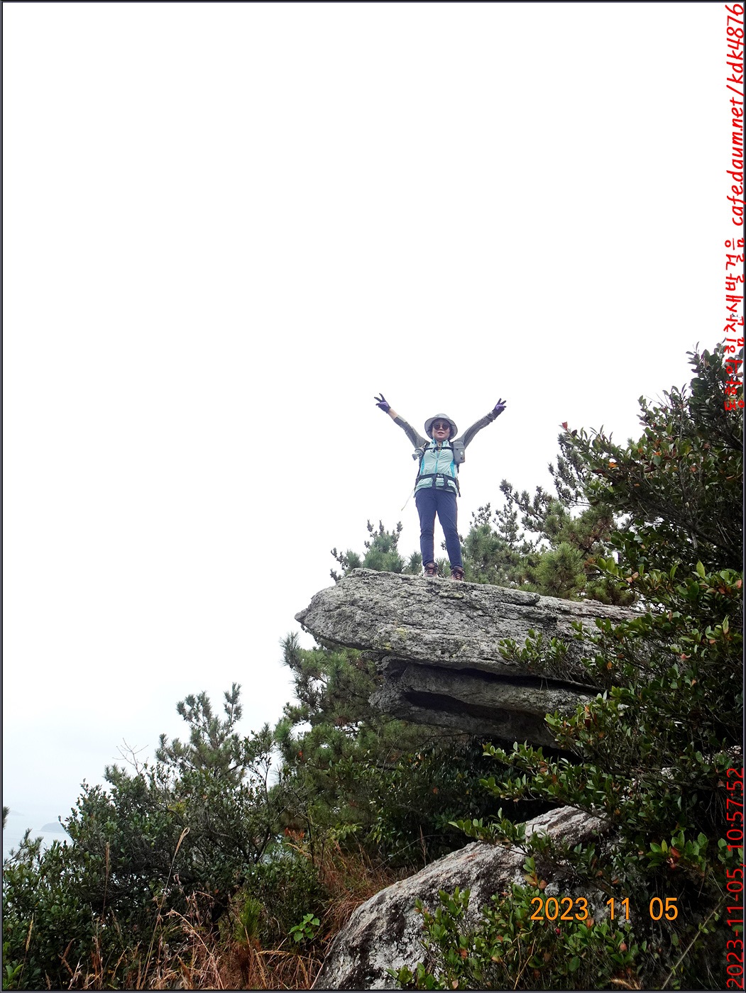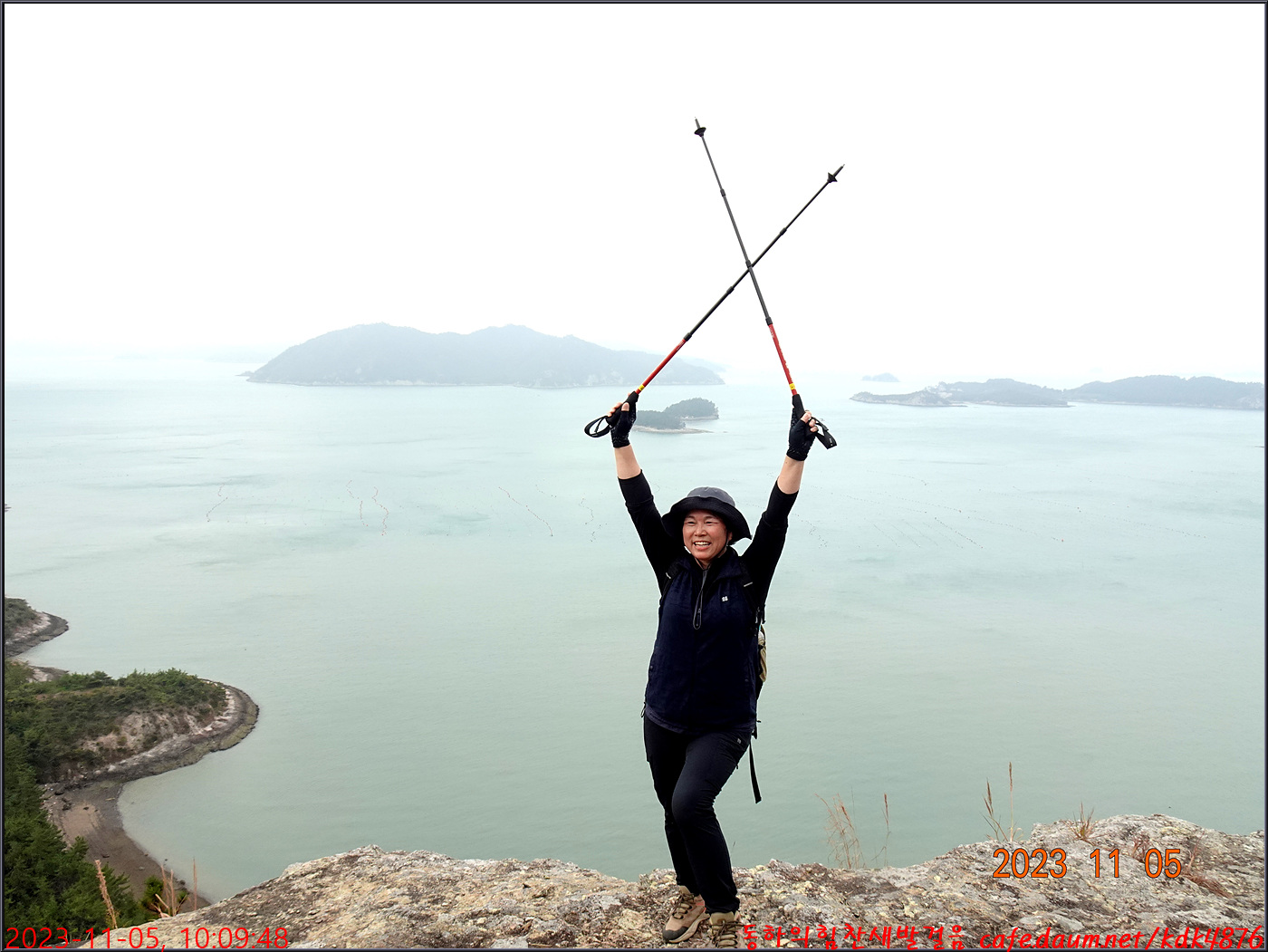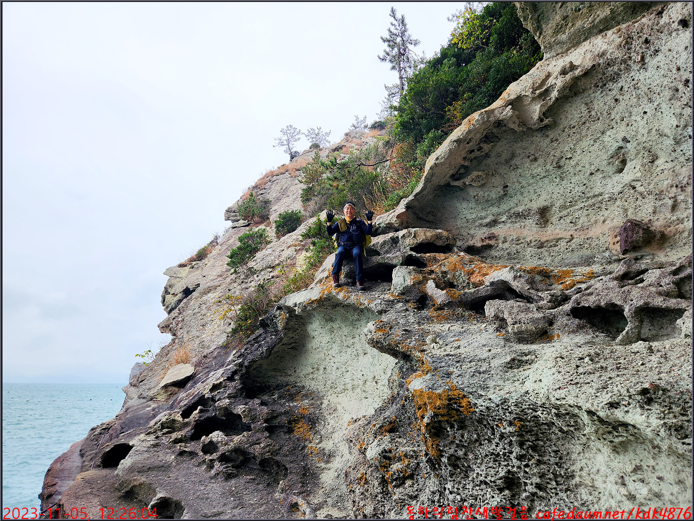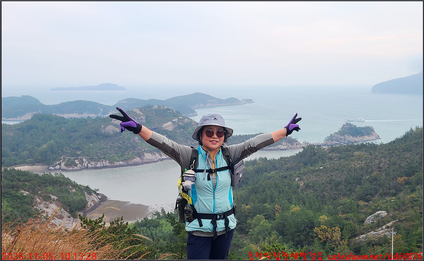 절벽 위에서 대화도를 배경으로 만세~~~ㅎㅎ, 봉남님