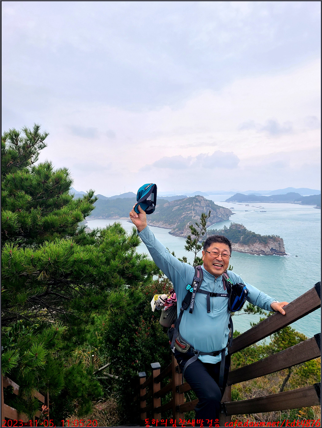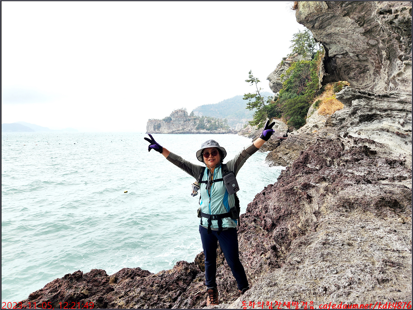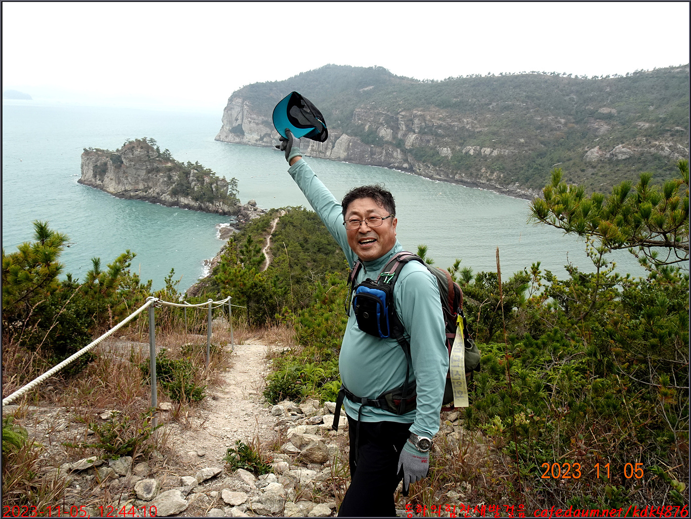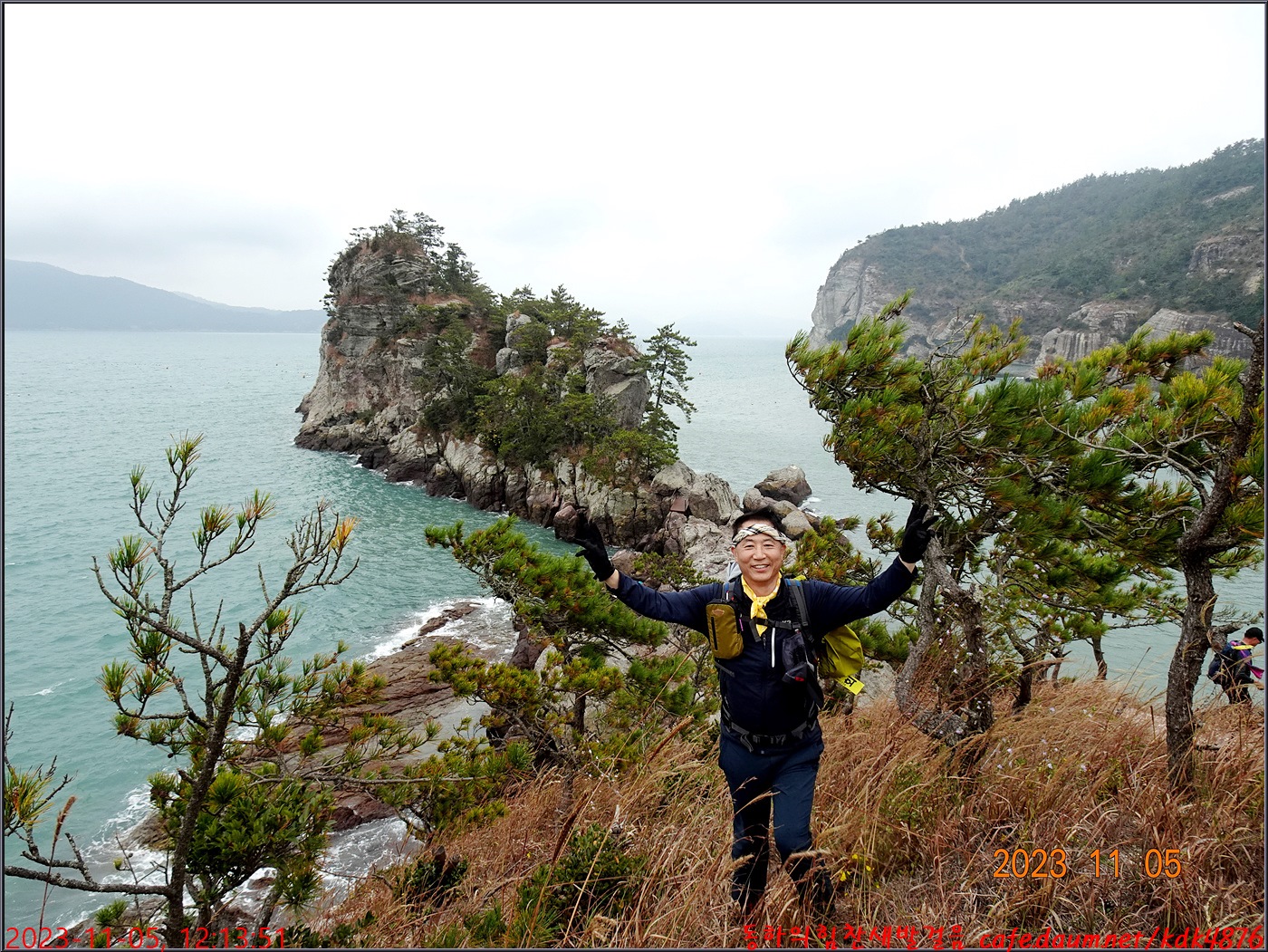 절벽 위에서 대화도를 배경으로 만세~~~ㅎㅎ, 봉남님