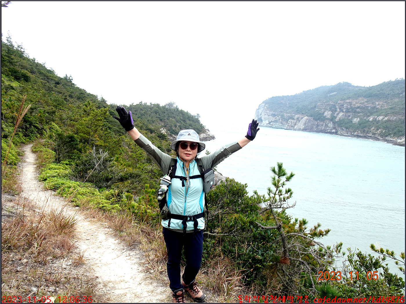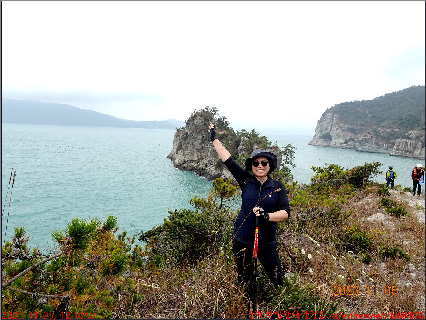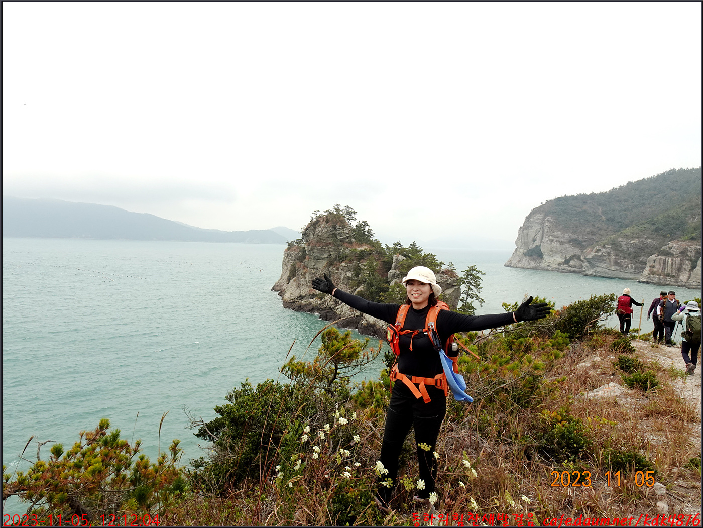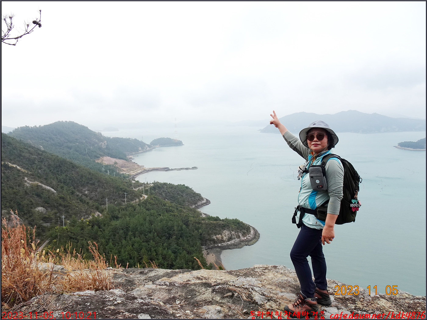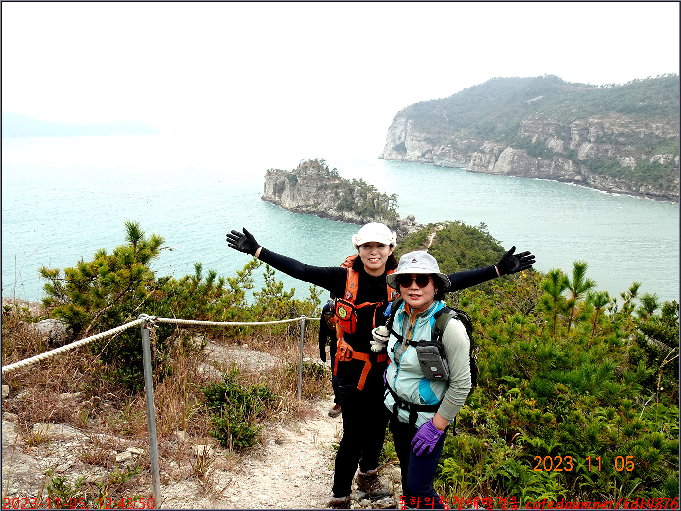 절벽 위에서 대화도를 배경으로 만세~~~ㅎㅎ, 봉남님