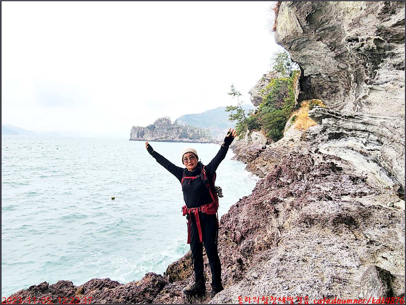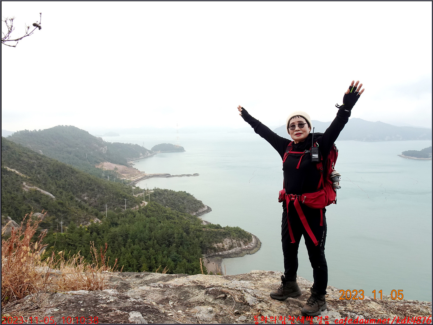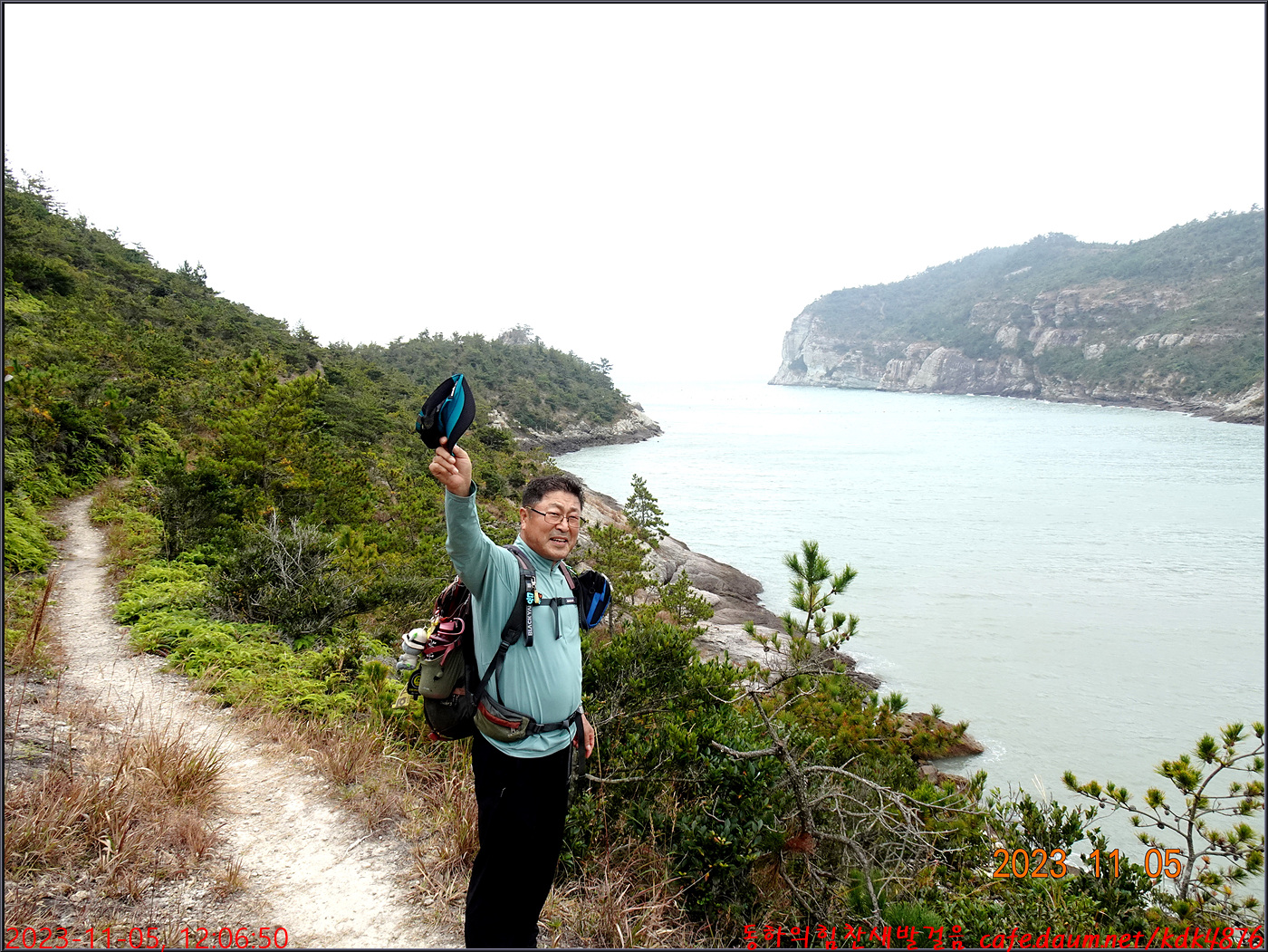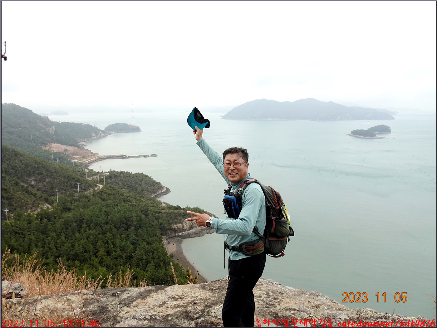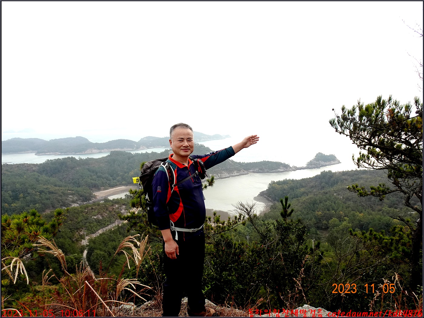 절벽 위에서 대화도를 배경으로 만세~~~ㅎㅎ, 봉남님
