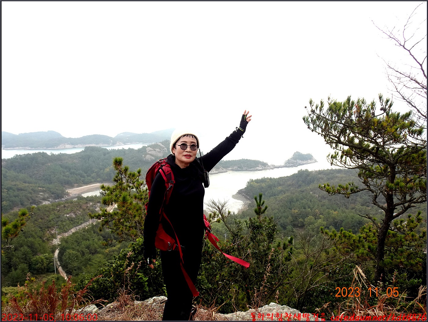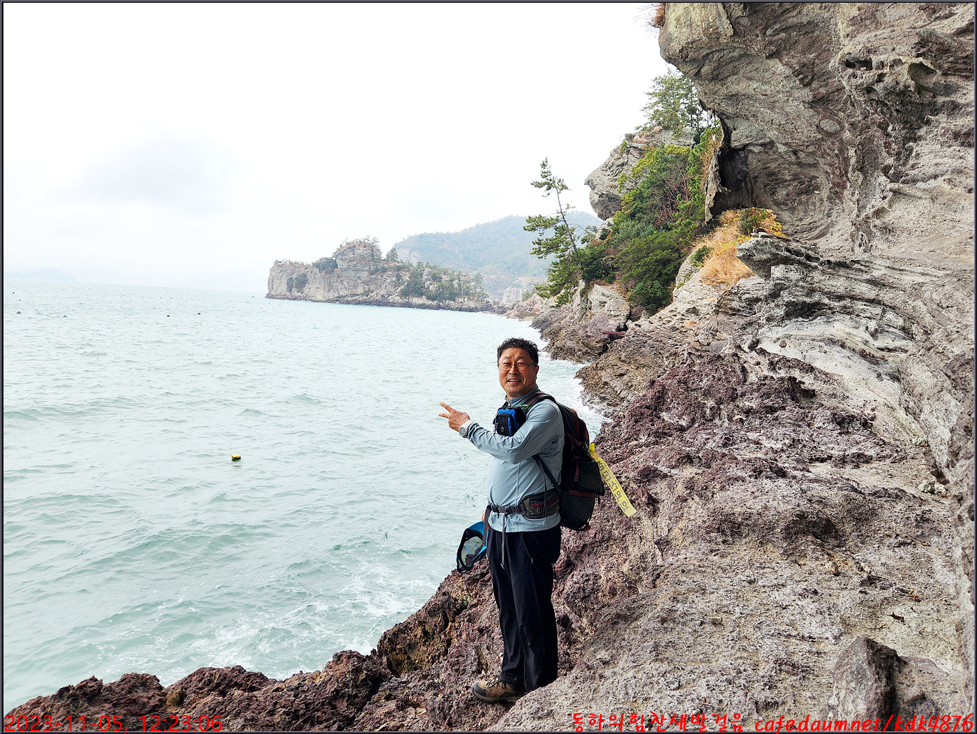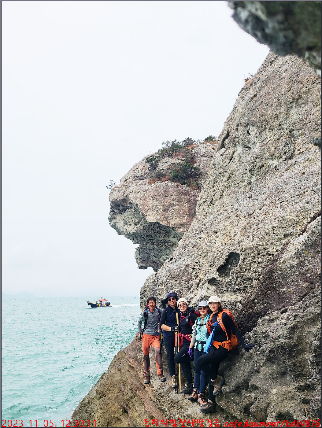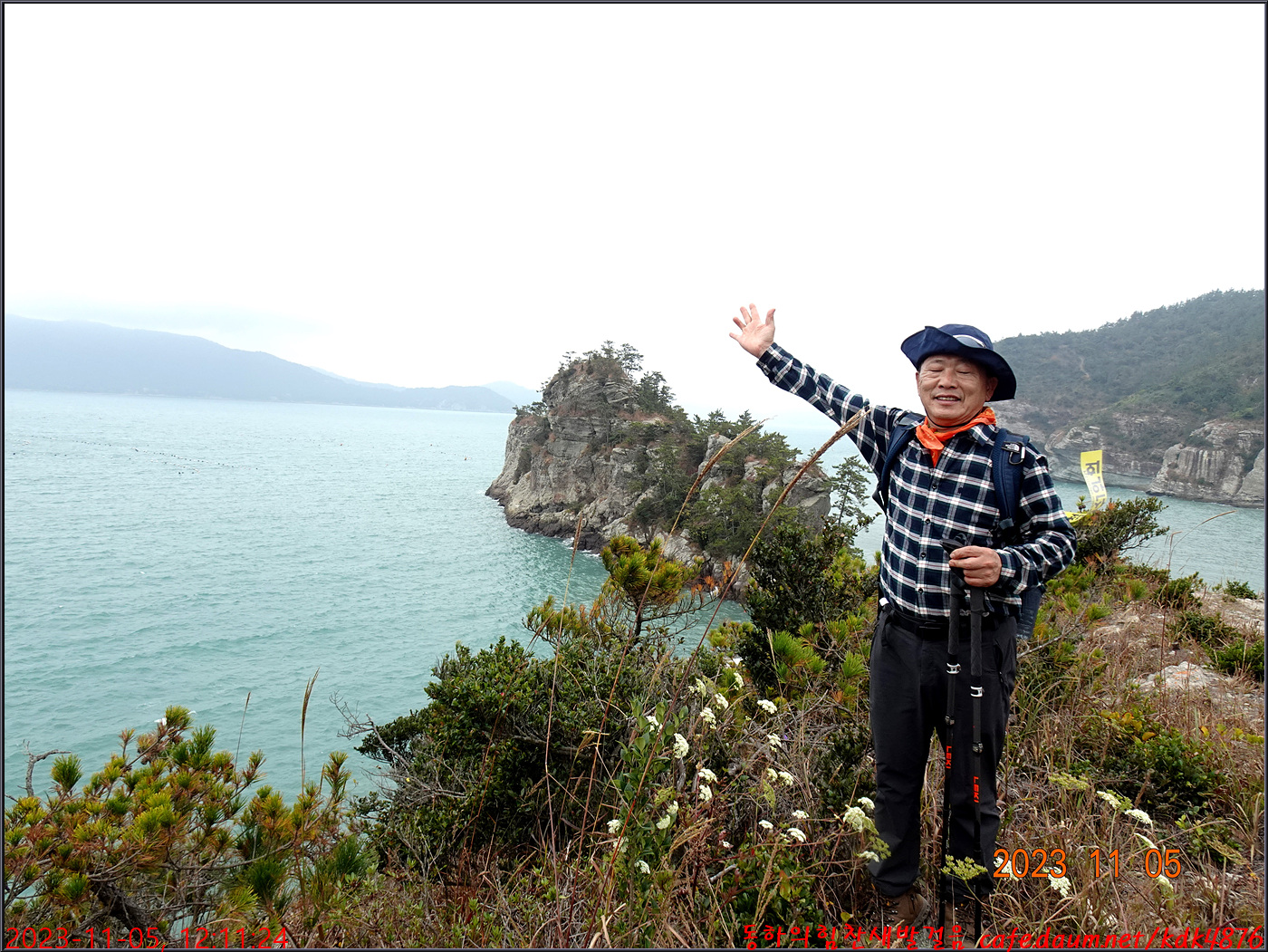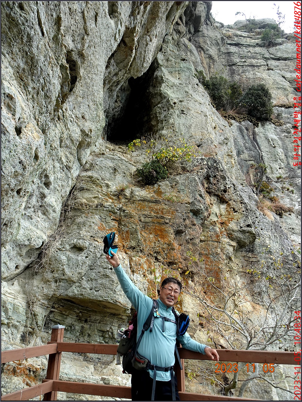 절벽 위에서 대화도를 배경으로 만세~~~ㅎㅎ, 봉남님