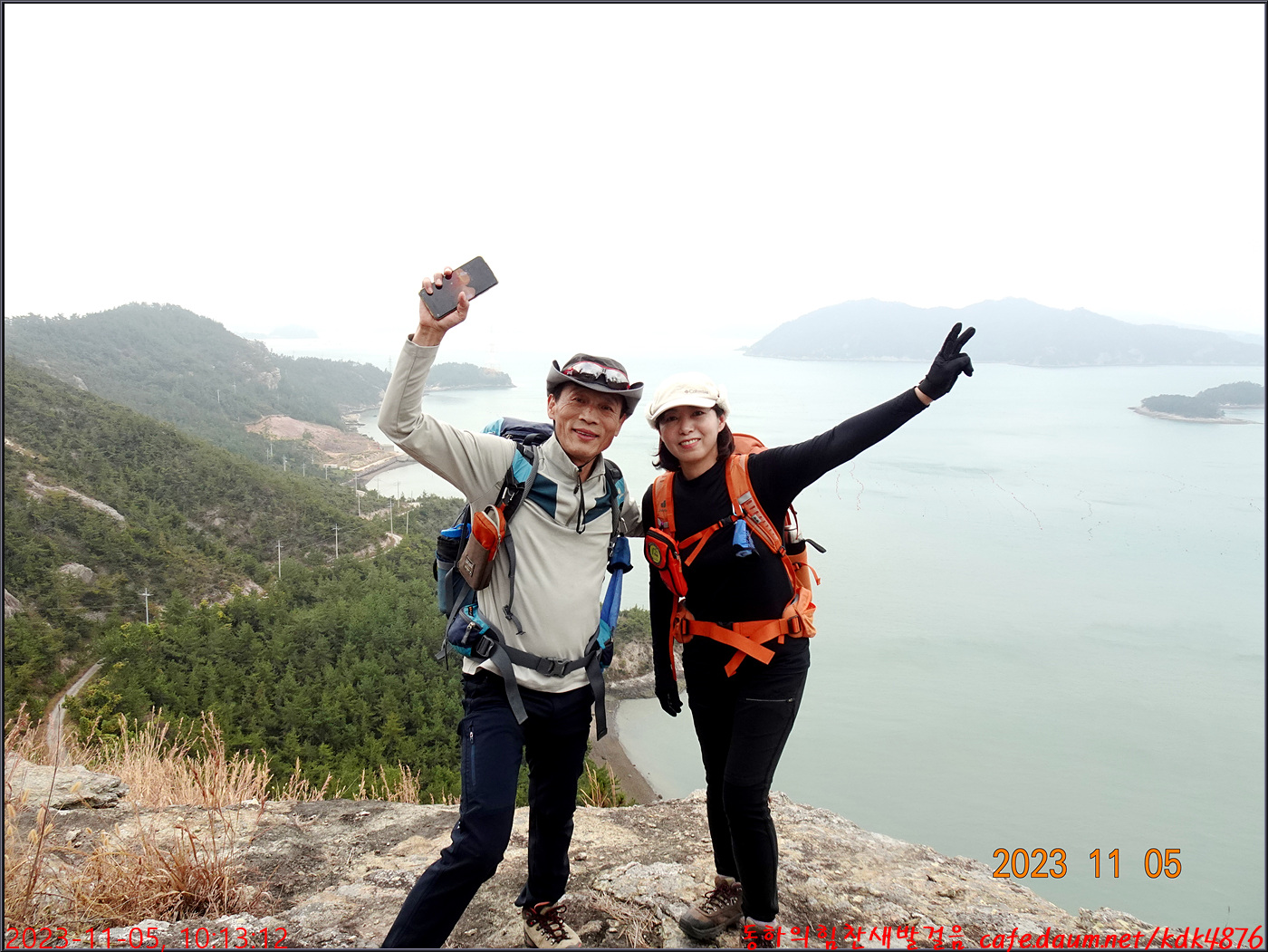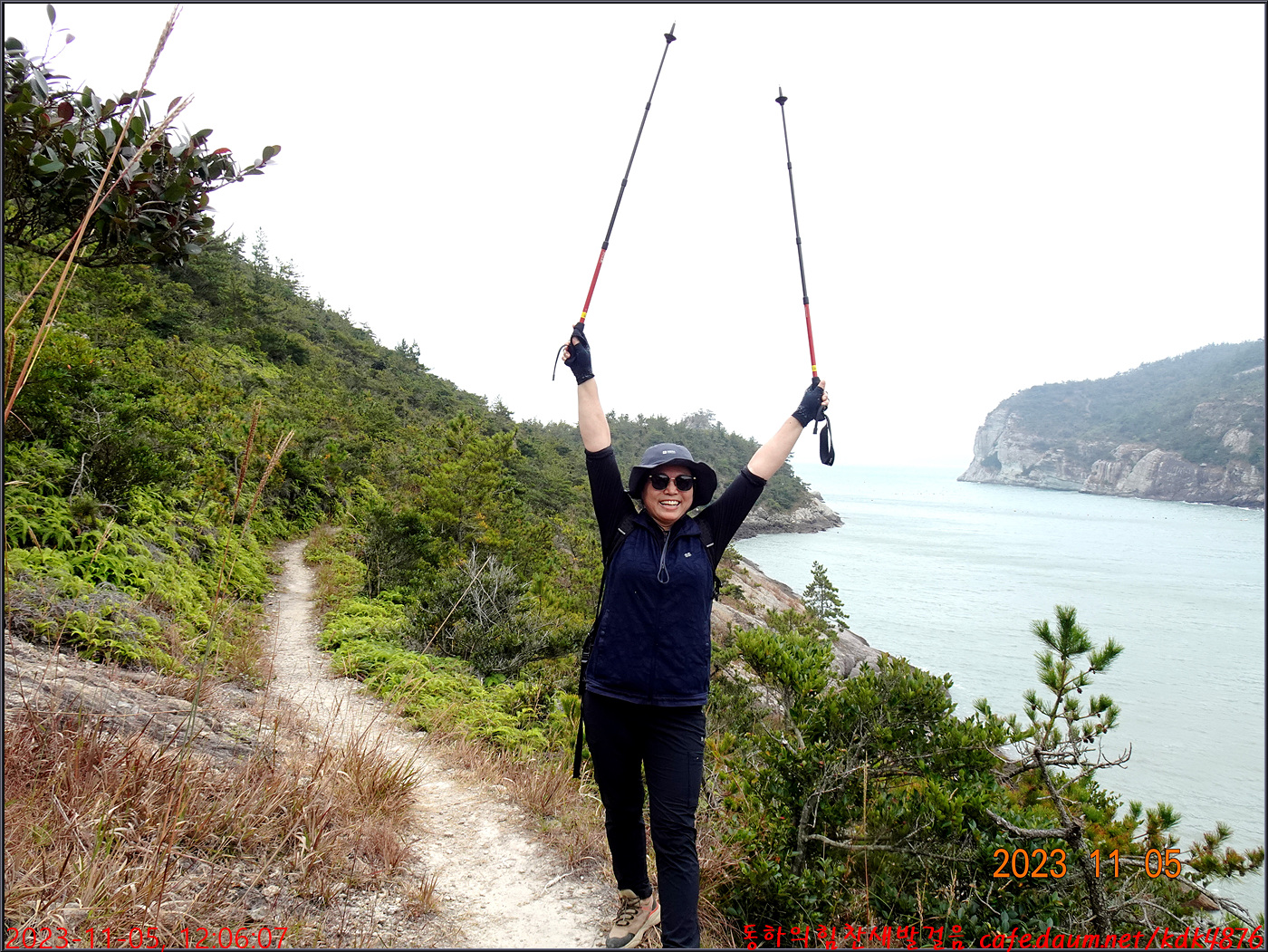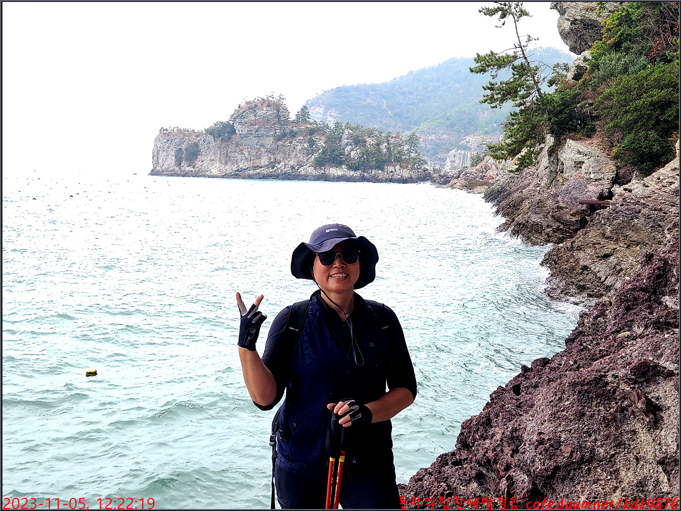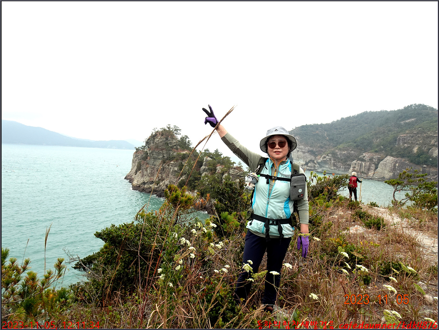 절벽 위에서 대화도를 배경으로 만세~~~ㅎㅎ, 봉남님
