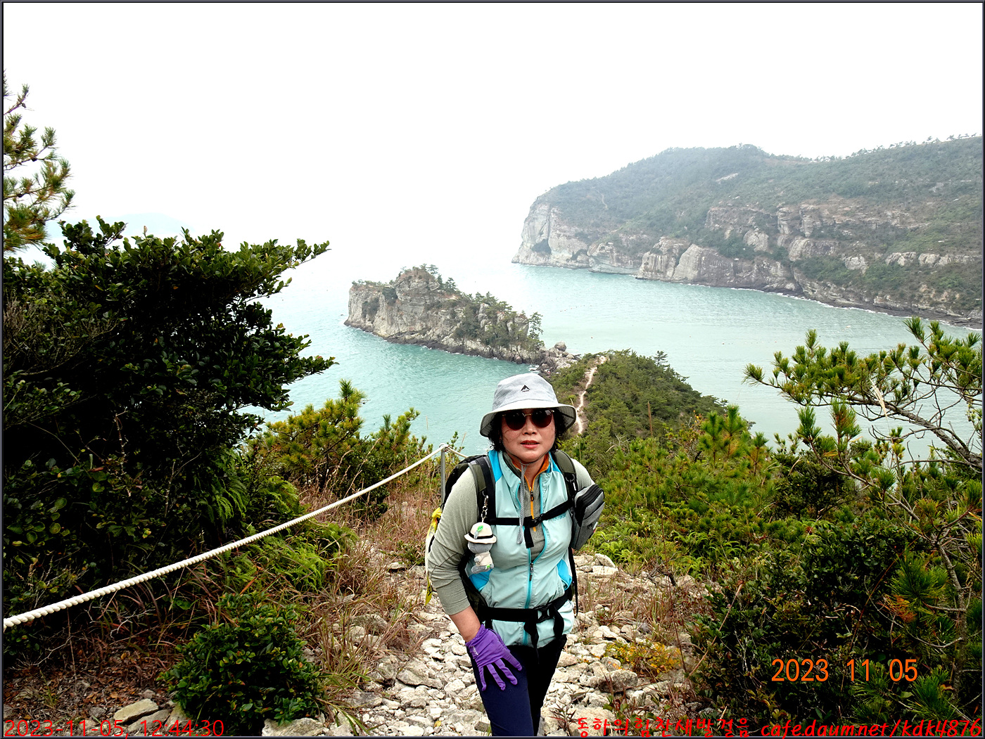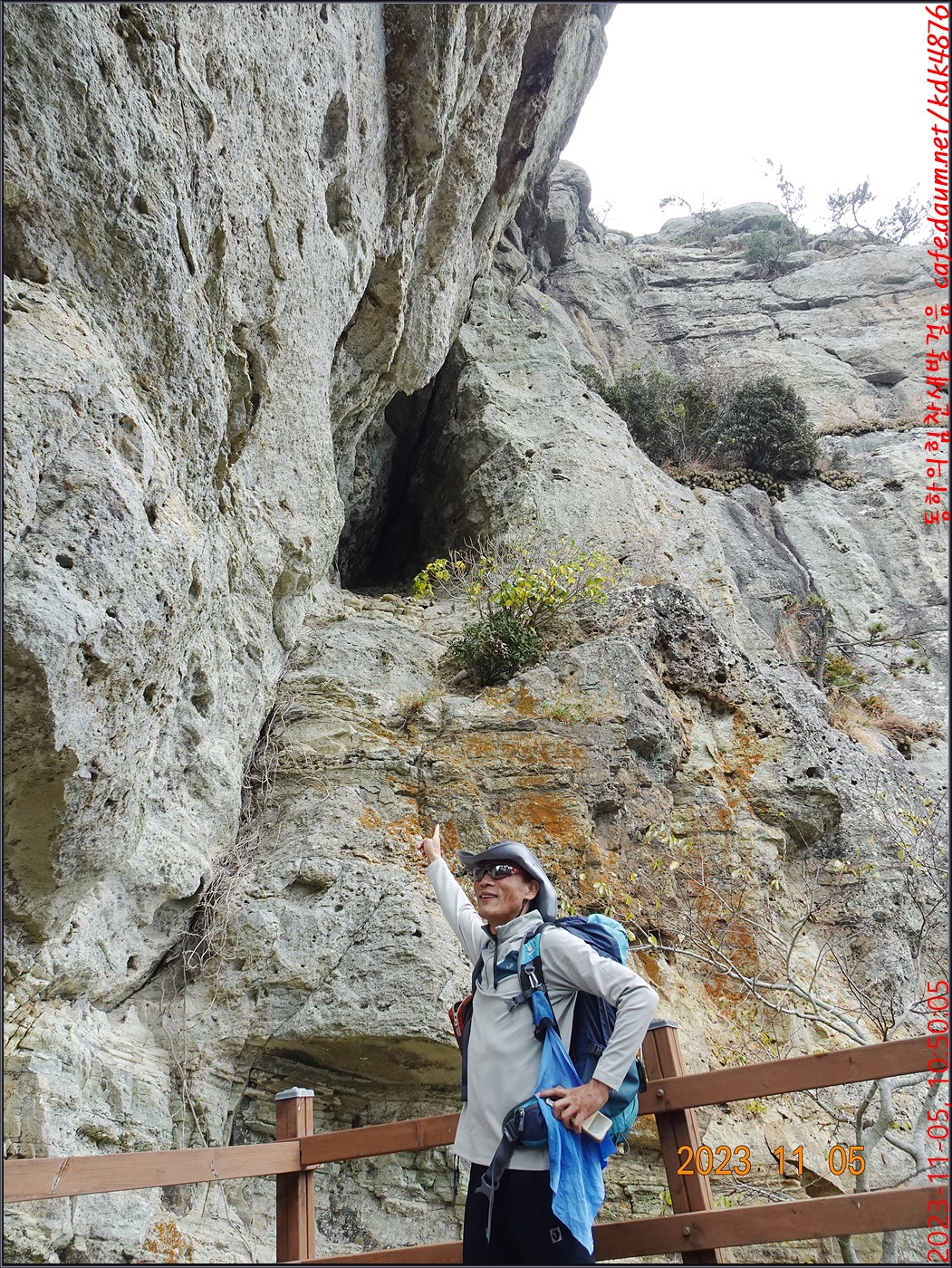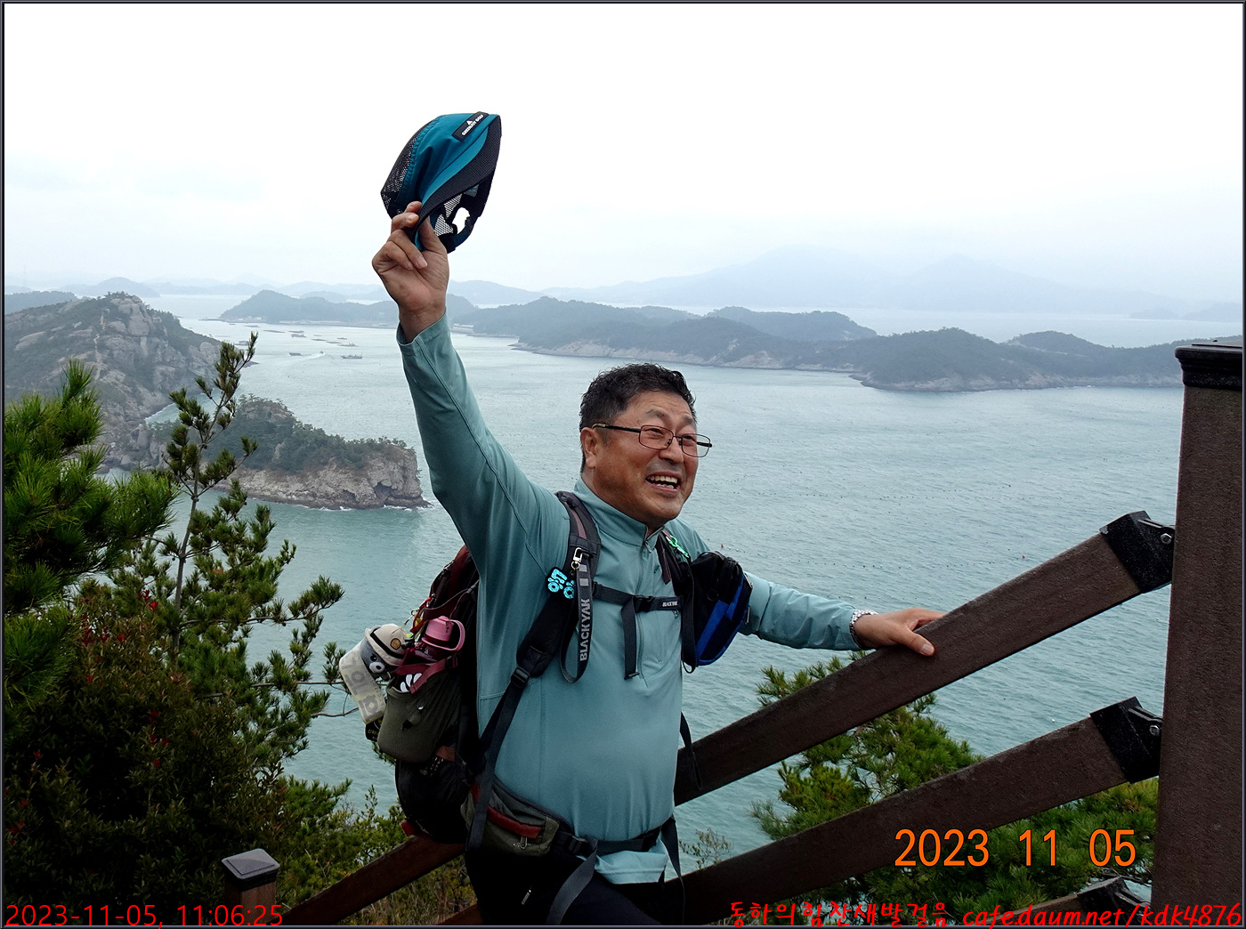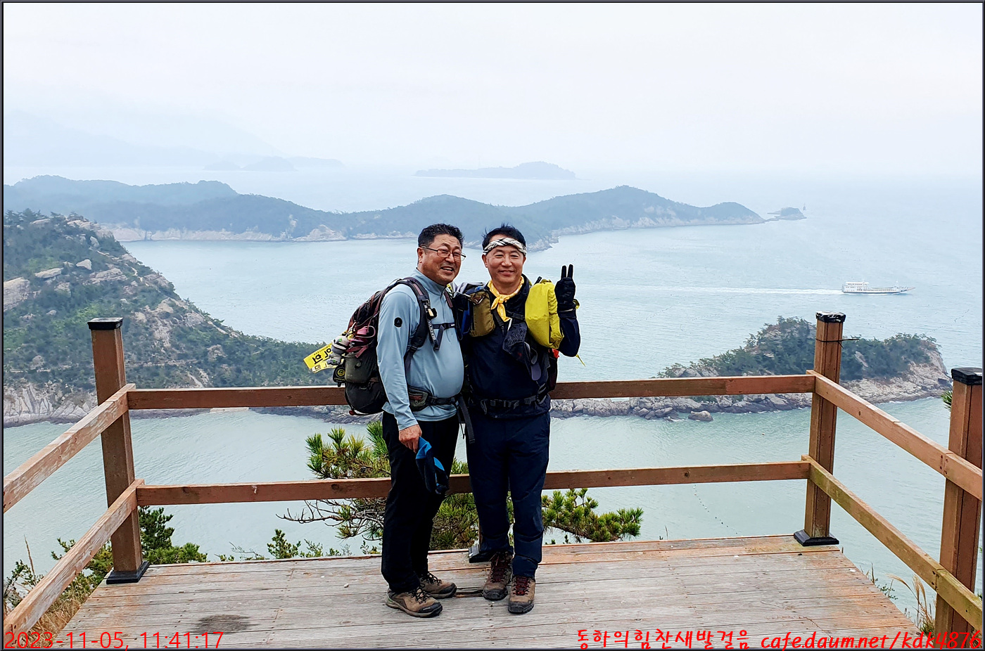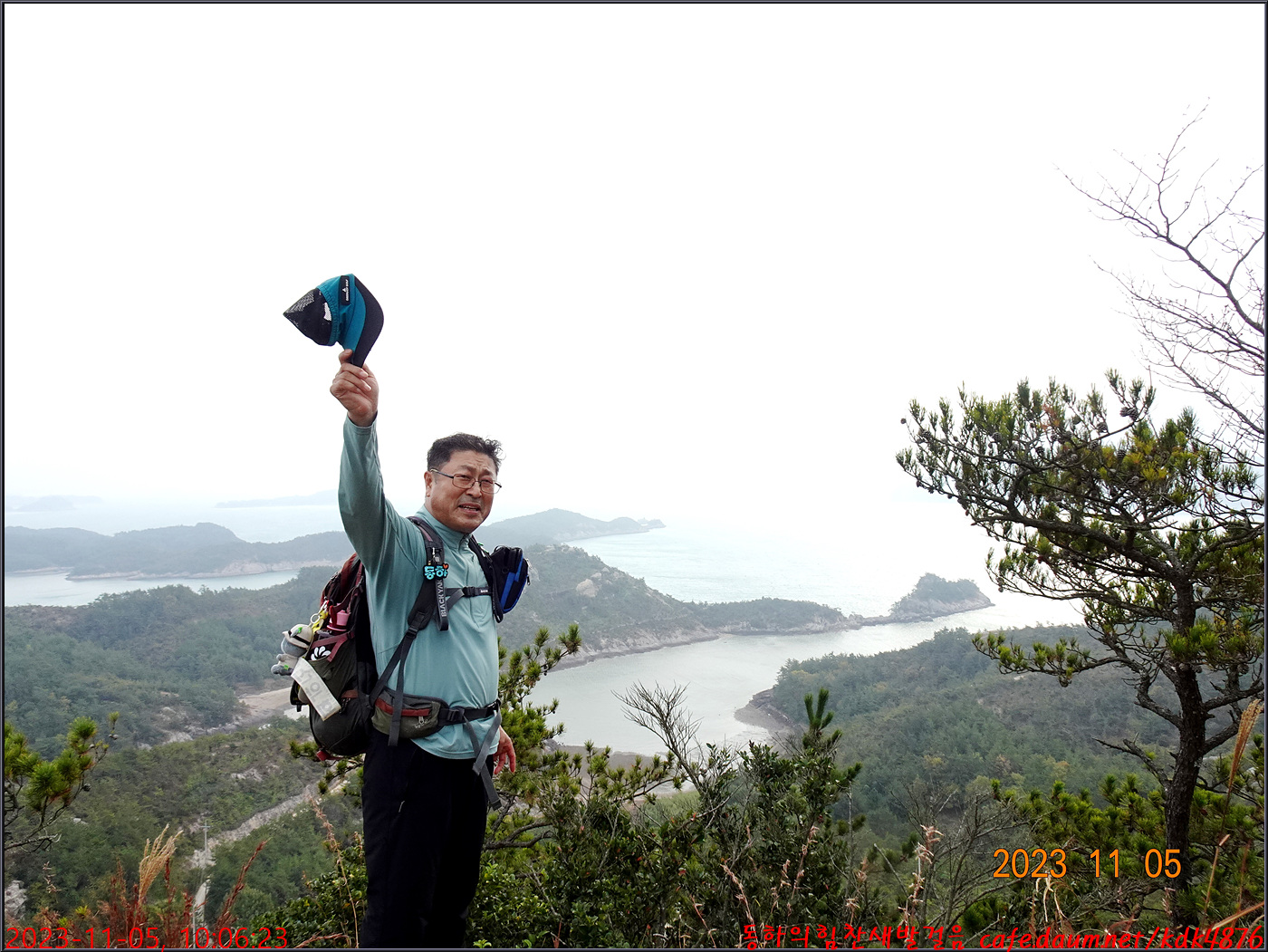 절벽 위에서 대화도를 배경으로 만세~~~ㅎㅎ, 봉남님