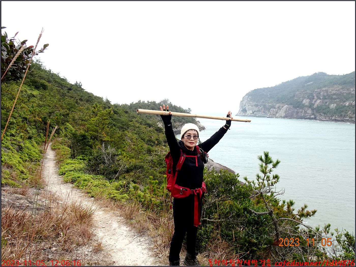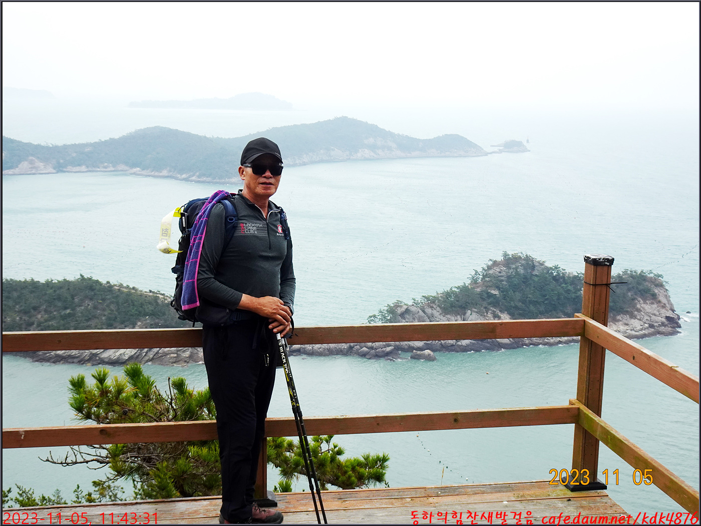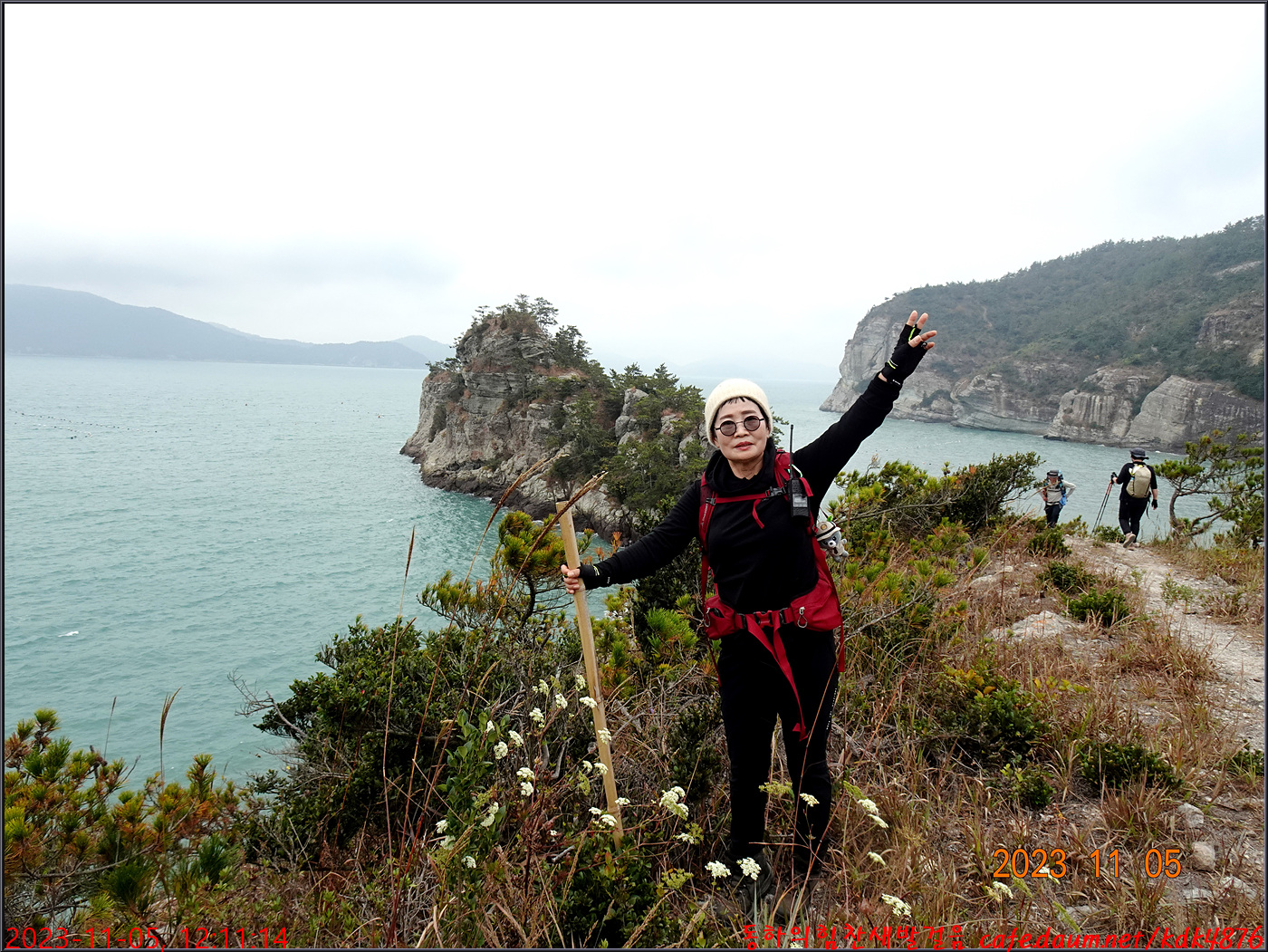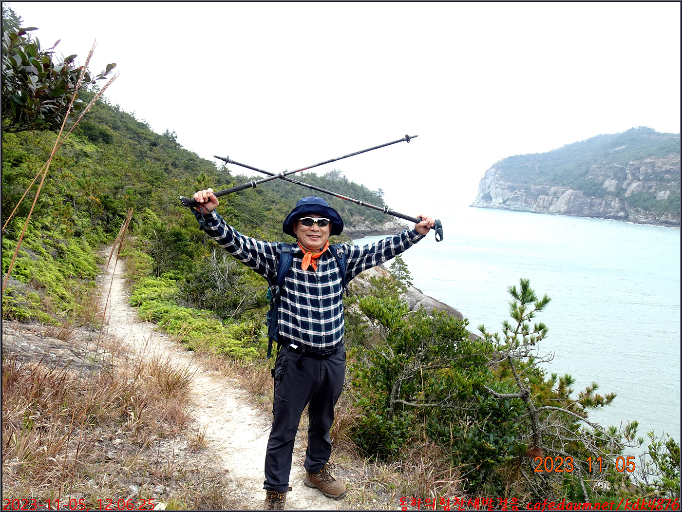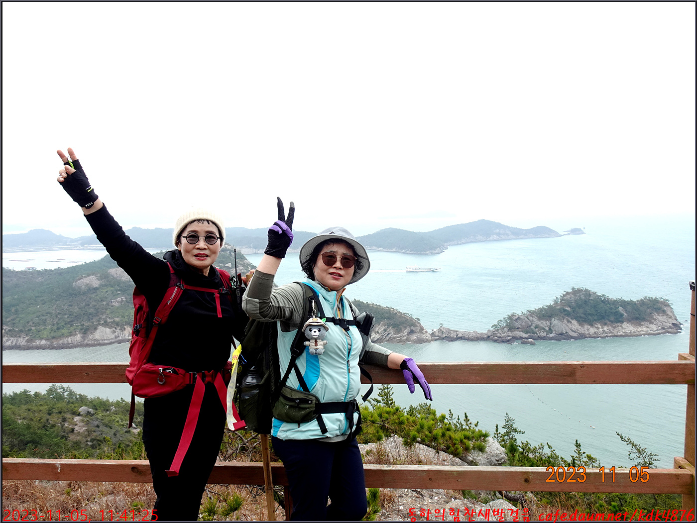 절벽 위에서 대화도를 배경으로 만세~~~ㅎㅎ, 봉남님