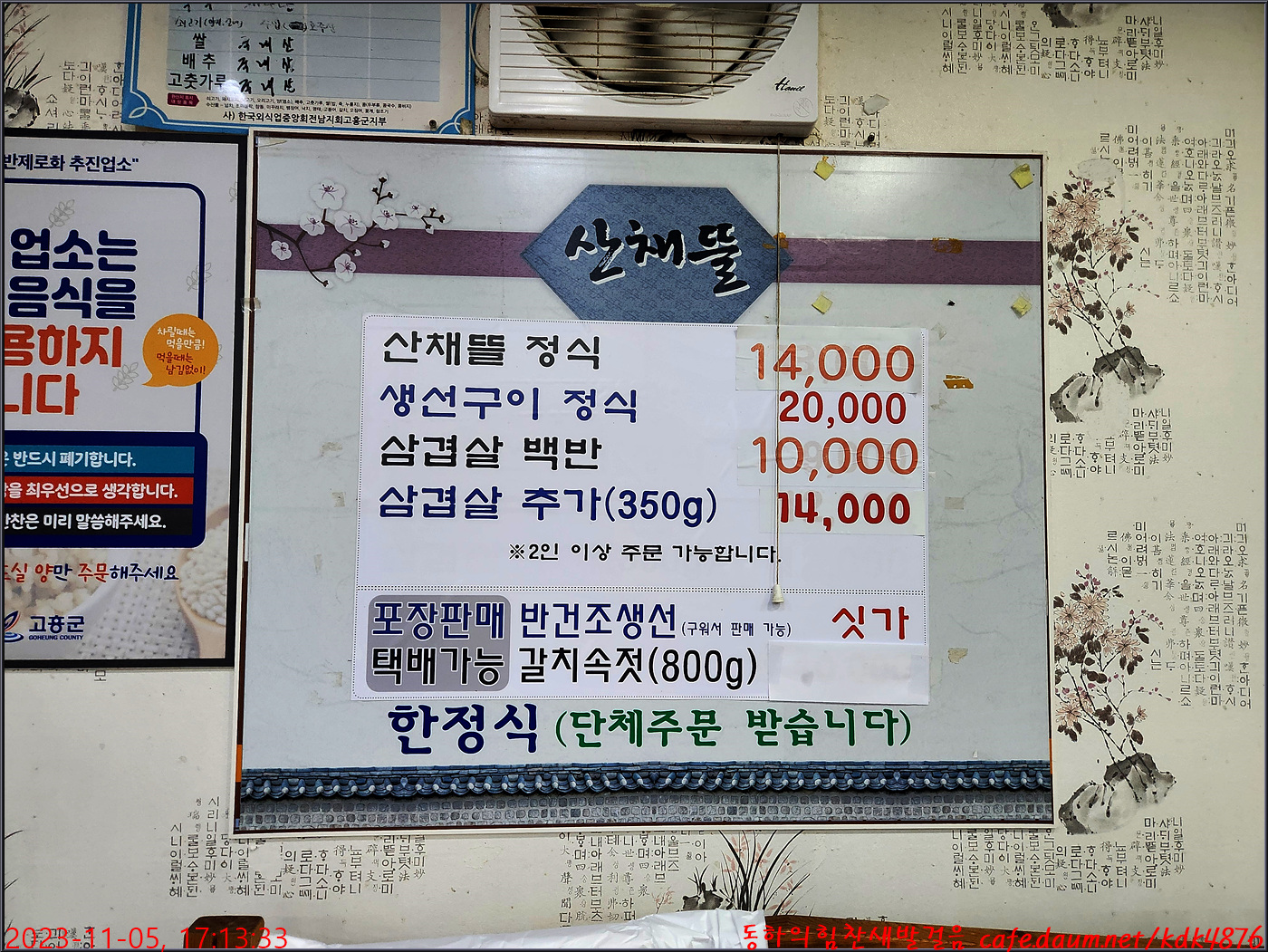 오늘의 메뉴는 산채뜰 정식 14,000원
