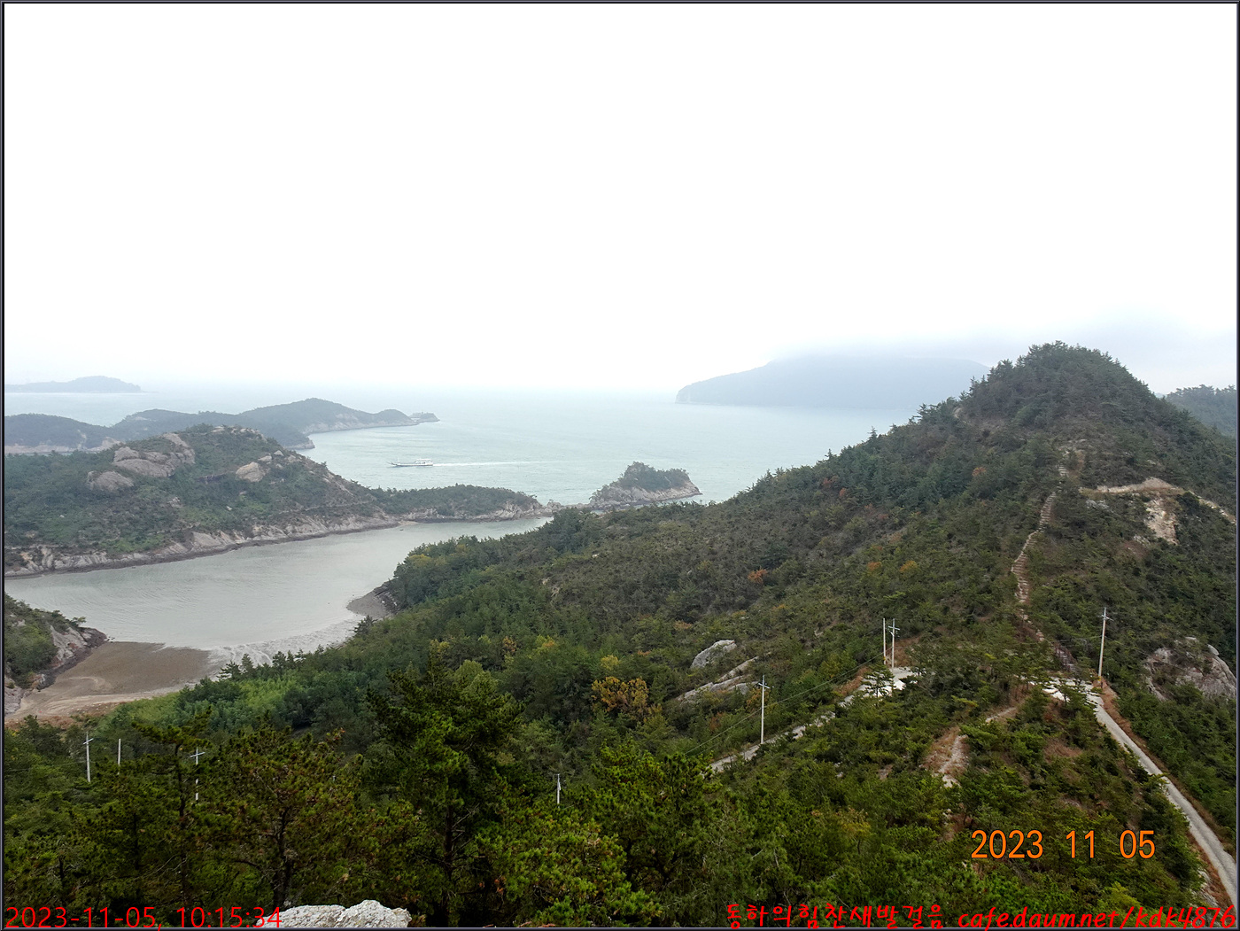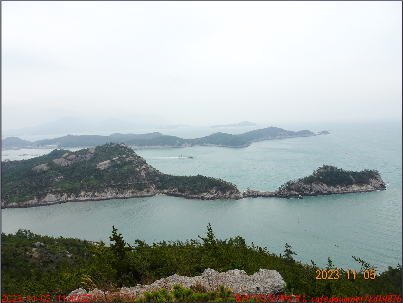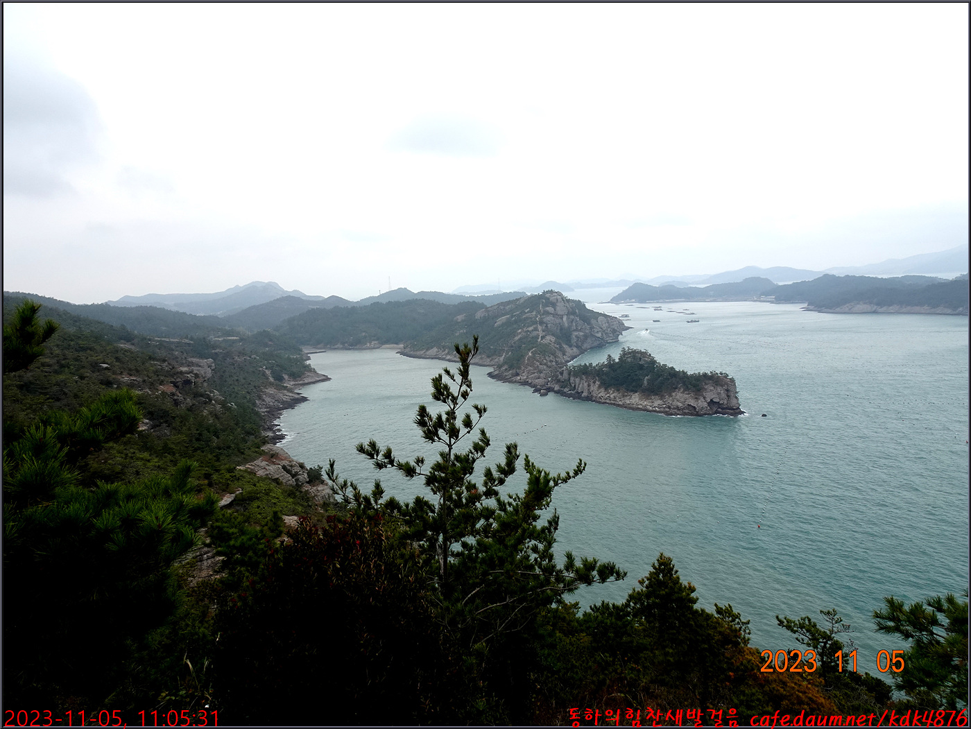 다시 한 번 바다 건너편으로 봉지산 오봉산 삼랑산이 조망됩니다.