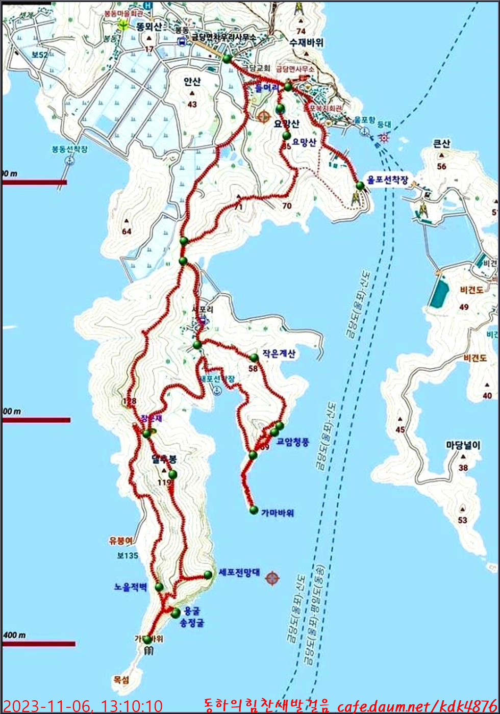-댈추봉-세포선착장-가마바위-교암청풍-작은계산-세포리-차우리-울포항(12.6km, 4시간30분)