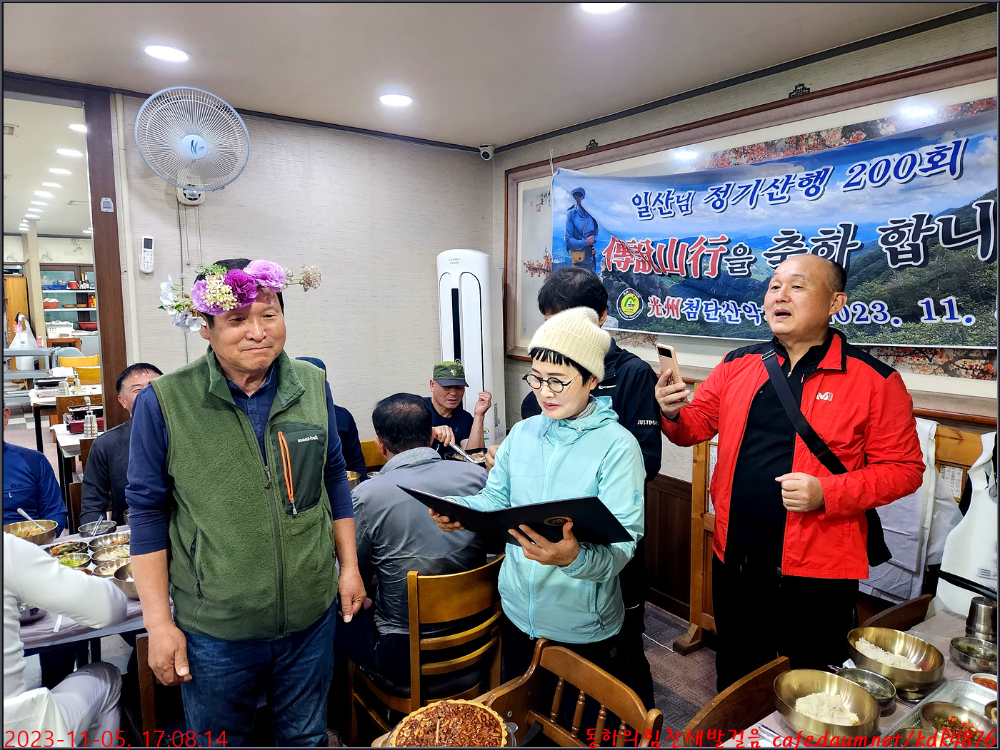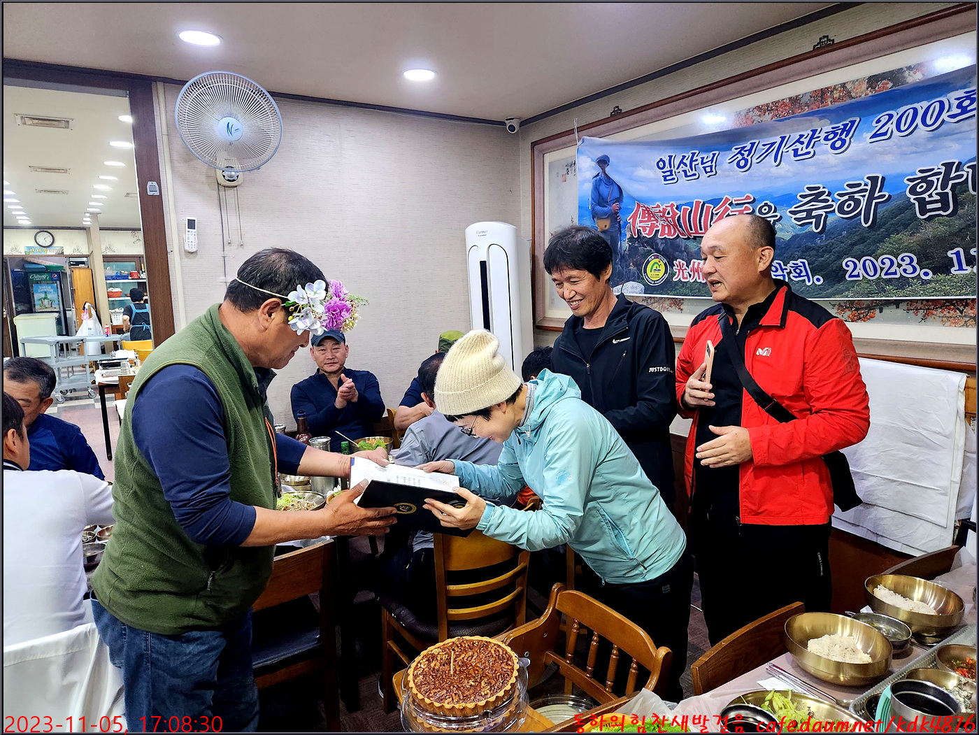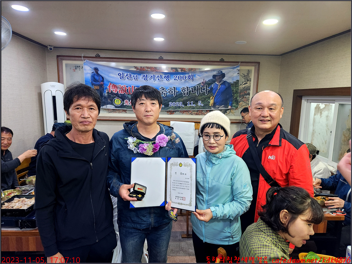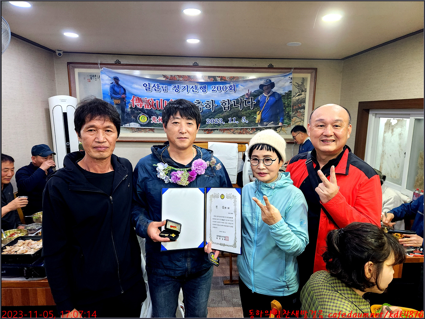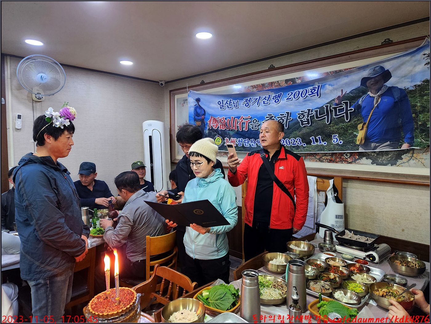 일산님의 200회 전설산행 표창장 수여식이 준비되어지고