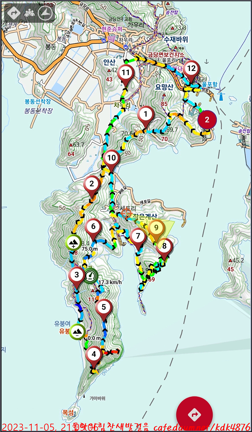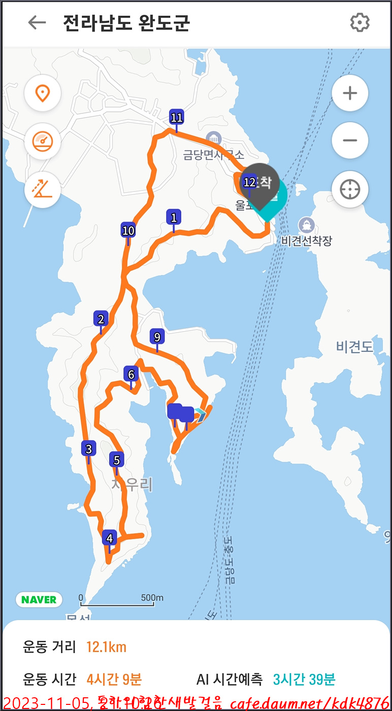 트랭글로 본 오늘의 완도 금당도 트래킹 정보