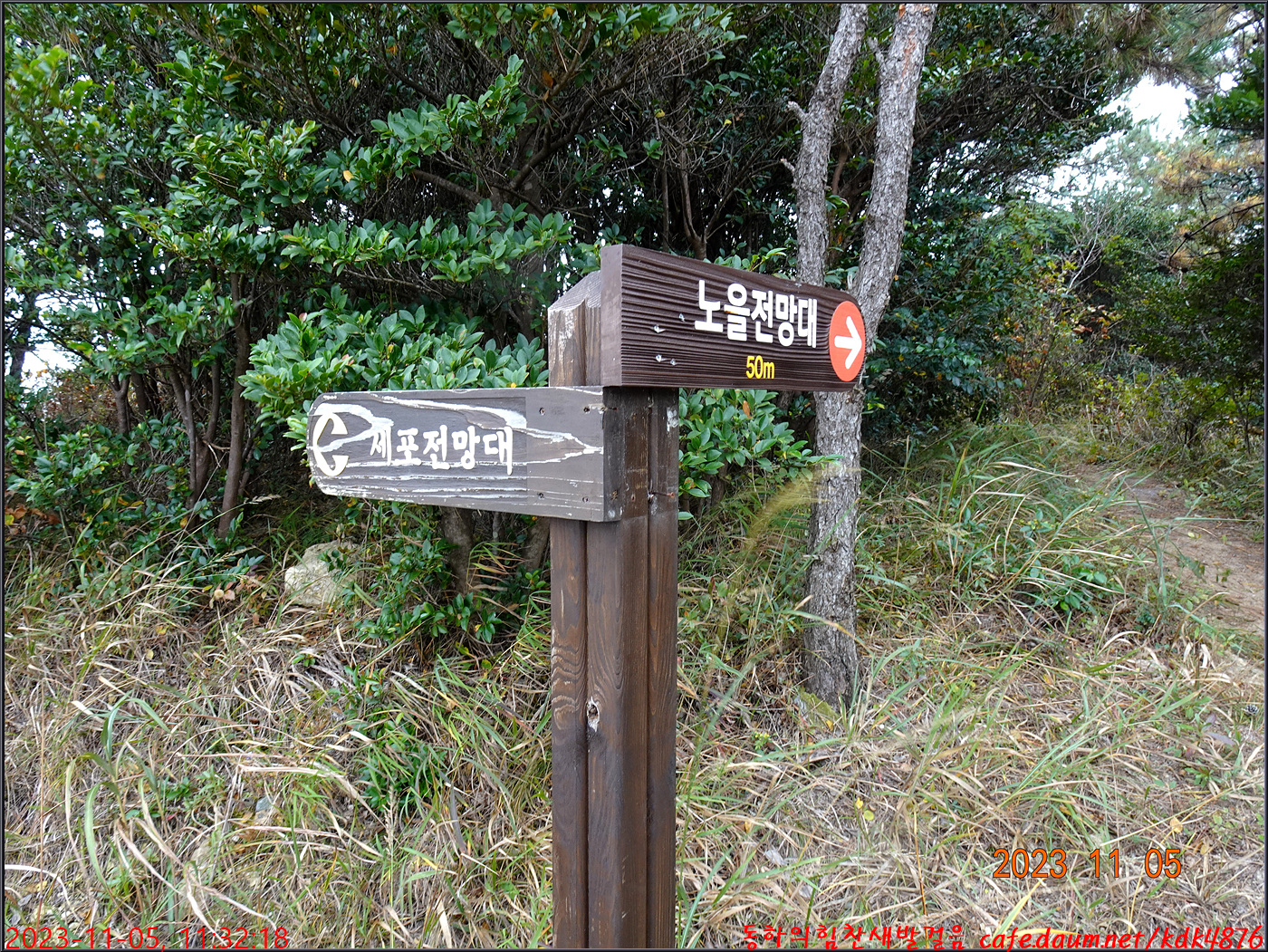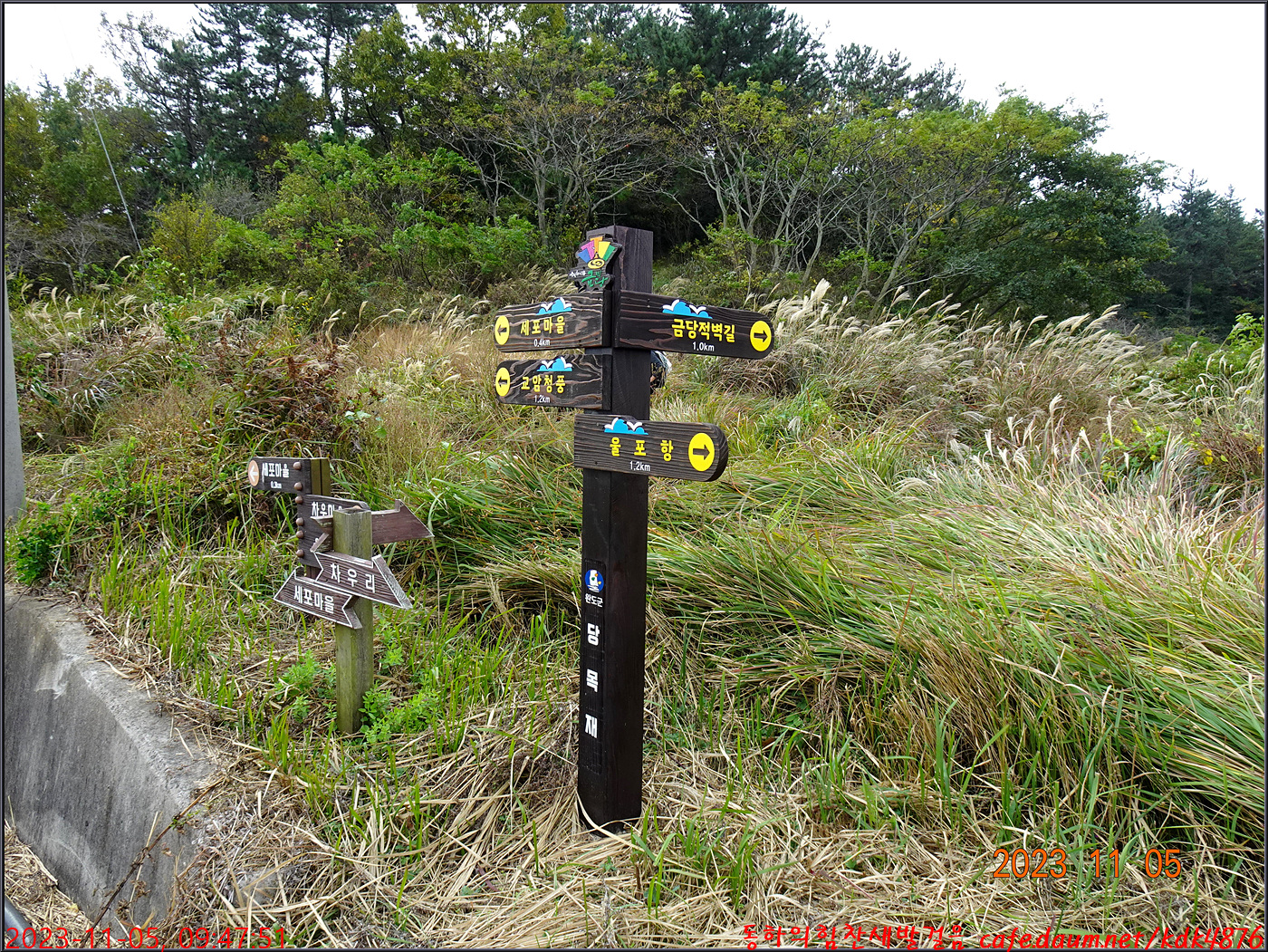 각암목적삼거리를 지나 세포전망대 1.5km 방향으로
