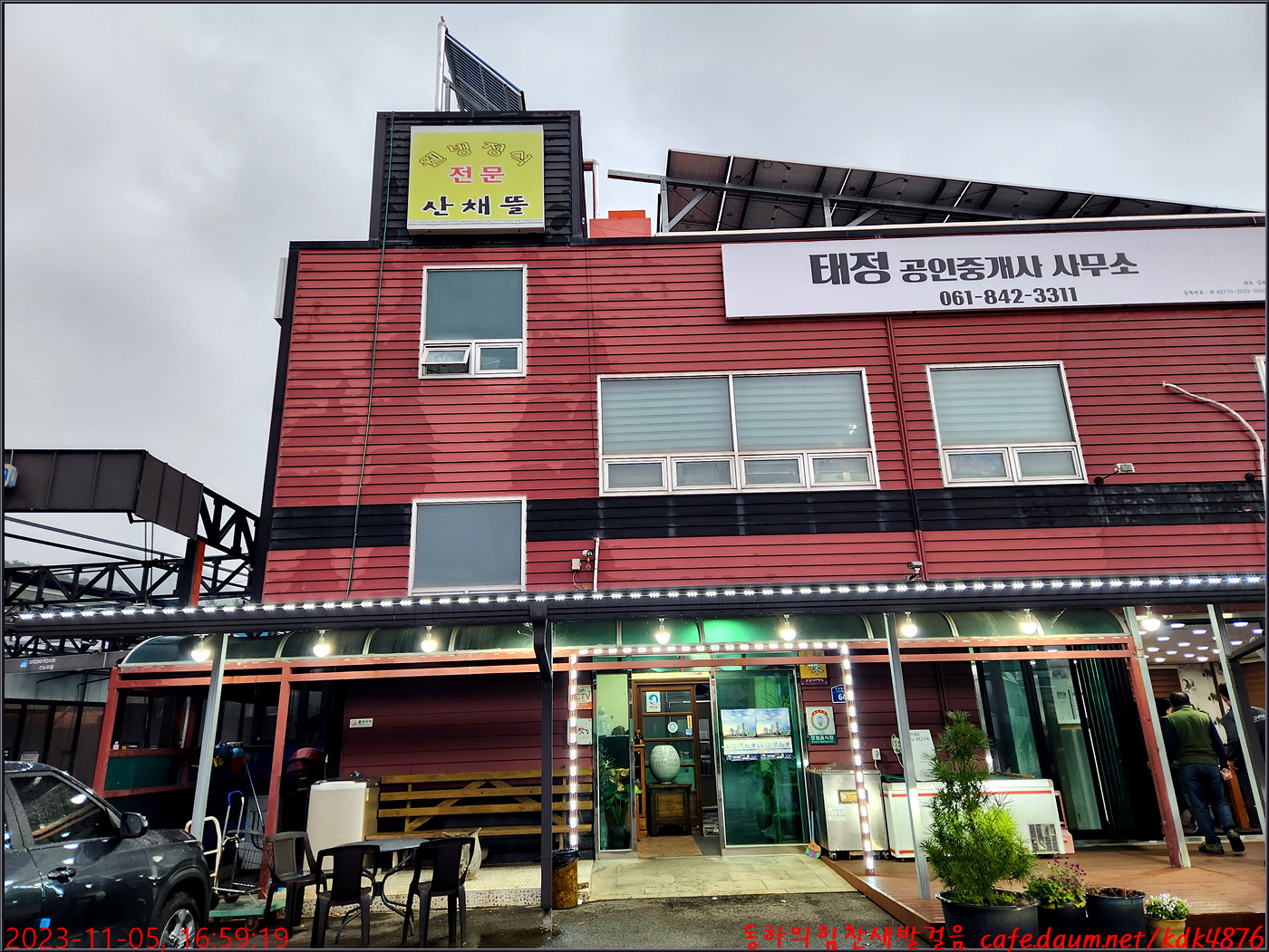 바다스파랜드 근처에 있는 산채뜰 식당으로 이동했습니다.